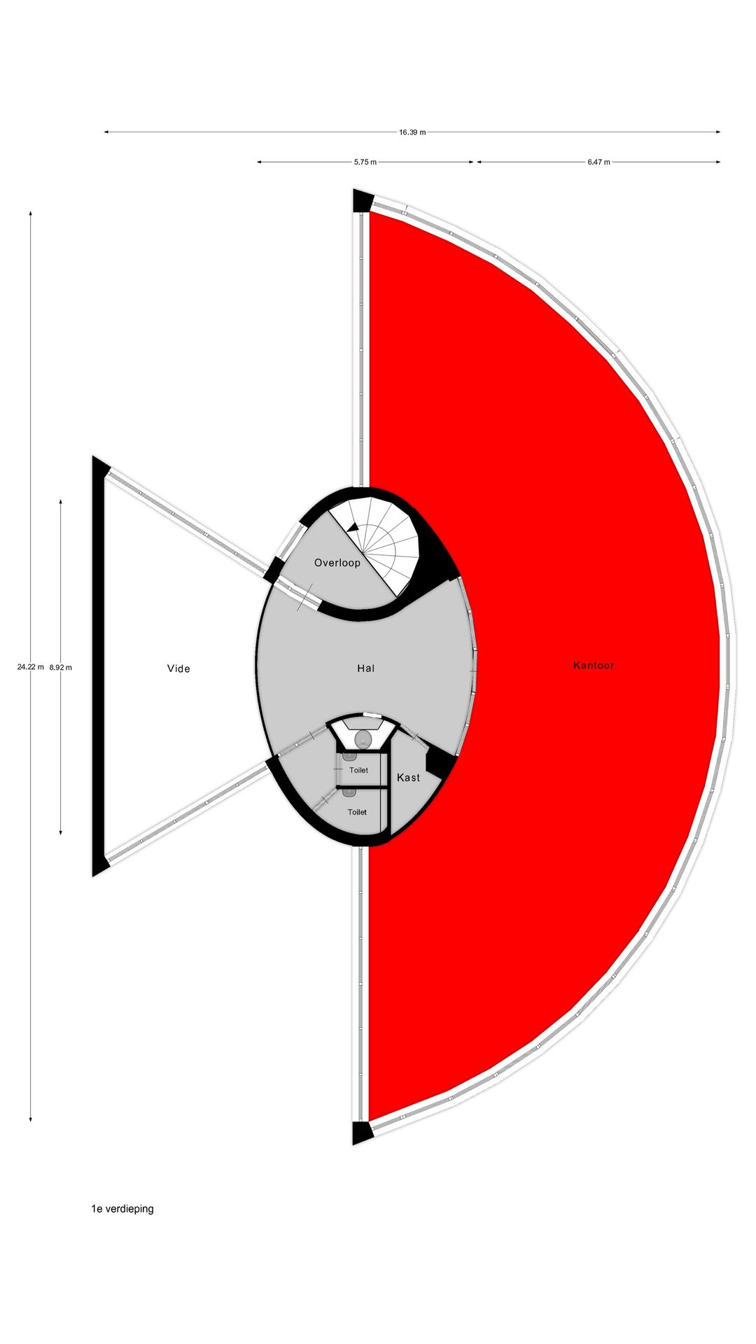- Kantoor 1e verdieping: 219,07 m² BVO;