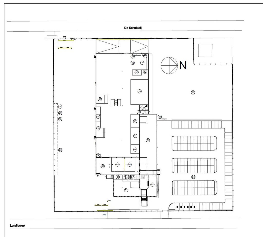 Voldoende parkeergelegenheid op eigen terrein ca. 121 stuks exclusiefs overig buitenterrein.