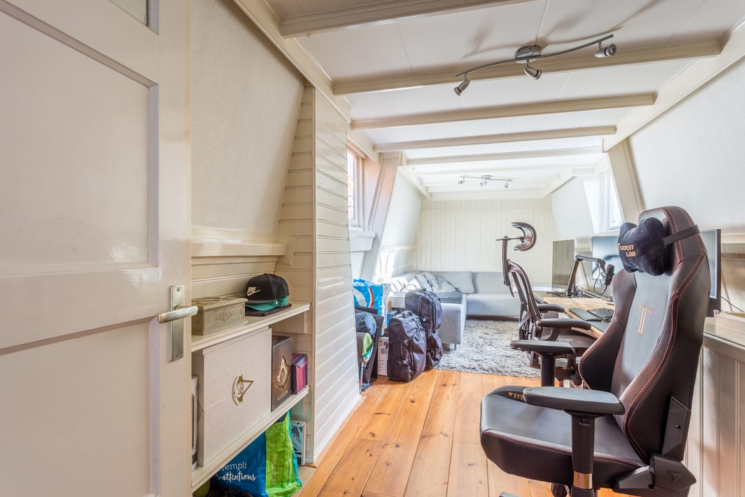 Op de bovenste verdieping bevindt zich een slaapkamer en een woonkamer. De woonkamer kan eventueel als tweede slaapkamer worden ingericht, afhankelijk van de woonbehoefte.