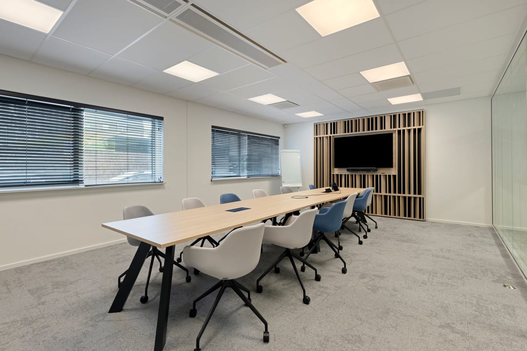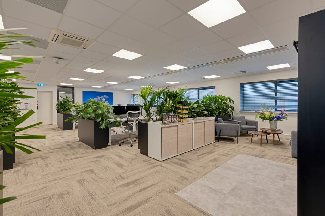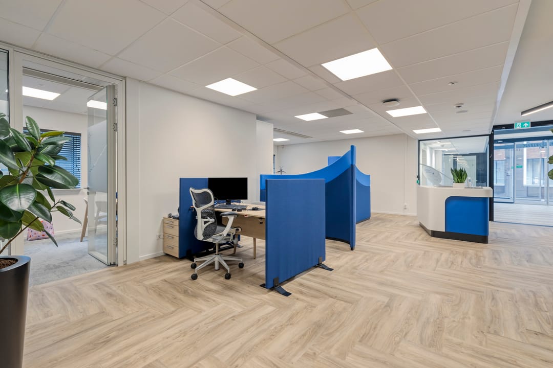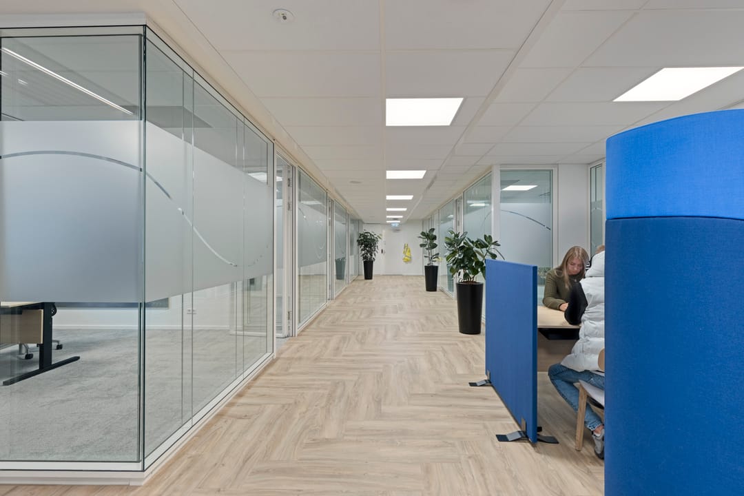 - Verlaagde systeemplafonds, deels bestaande uit vierkante vlakverdeling met deelstroken met daartussen ledverlichting in lijnen;