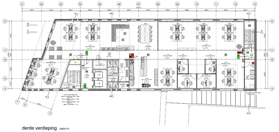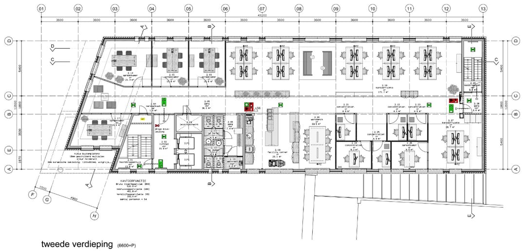 - Dames- en heren toiletgroepen per verdieping en op begane grond mindervalidentoiletruimte;
