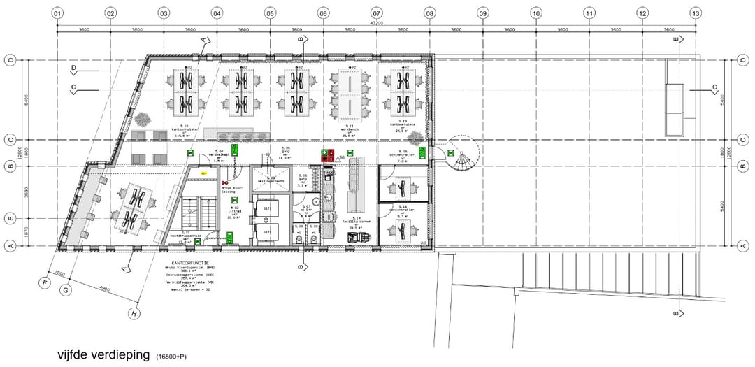 5e verdieping Ca. 244,6 m2 Kantoorruimte (verhuurd Boba Zorg B.V.);