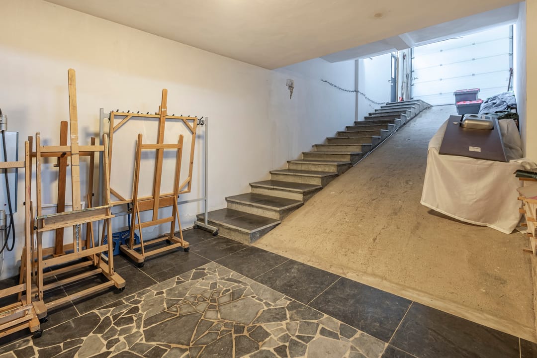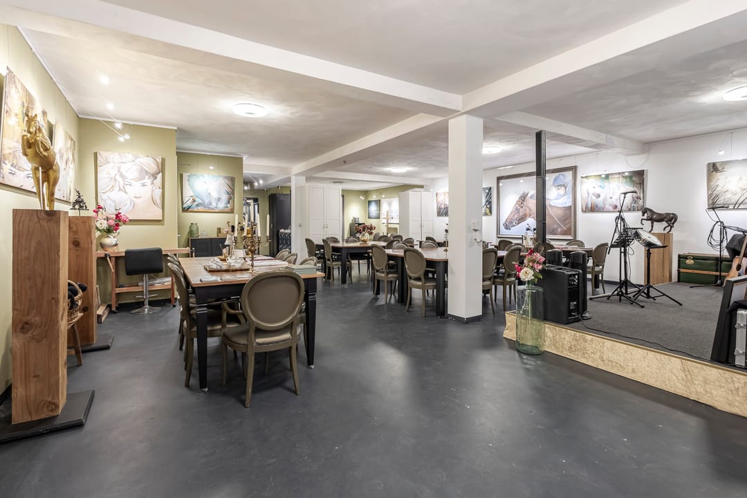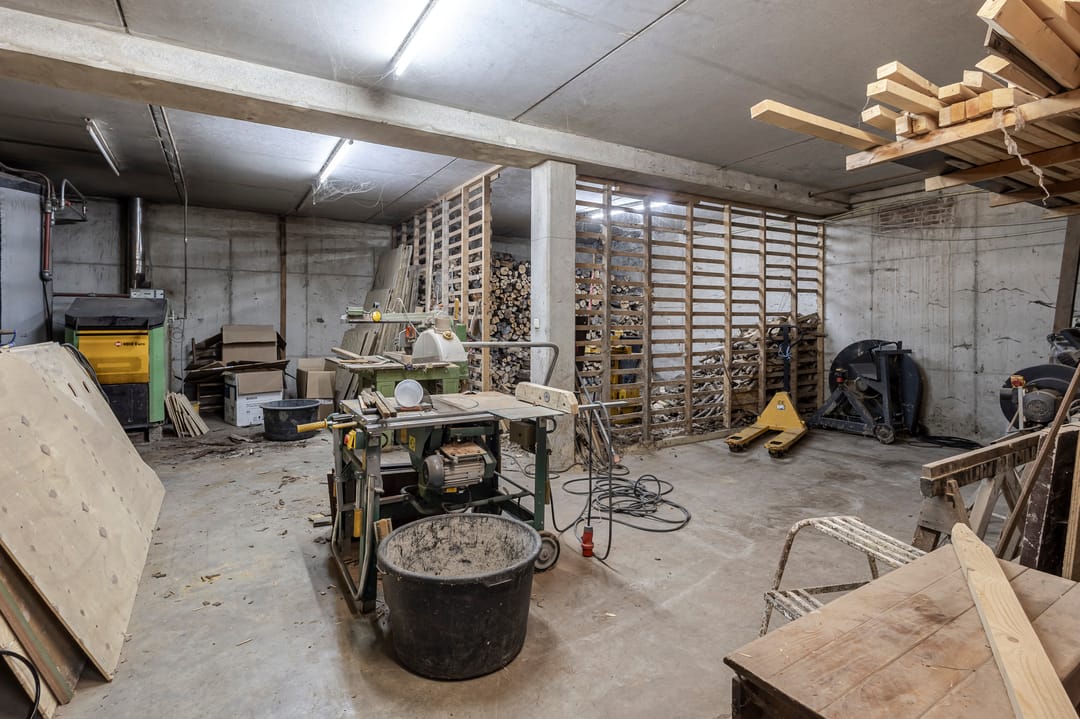 Onder de boerderij bevindt zich een parkeergarage (354 m2) en een souterrain (78 m2). Hier is onder andere een (evenementen)zaal, compleet met keuken en toiletgroep (134 m2). Hier kunnen bijvoorbeeld conferenties, trainingen, workshops of bijeenkomsten plaatsvinden. De parkeergarage is geschikt voor het parkeren van meerdere auto’s, maar kan ook dienen als opslag-, presentatie- of klusruimte.