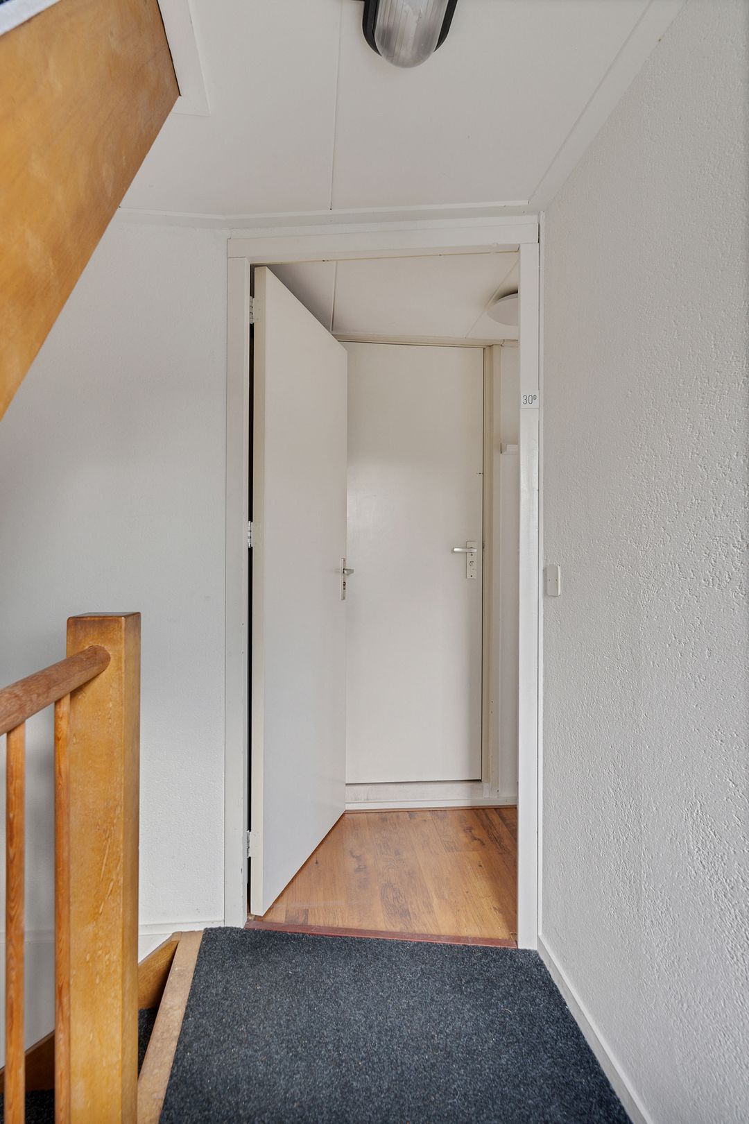 Via de trap aan de achterzijde is het laatste appartement 30E bereikbaar. Dit appartement heeft een soortgelijke lay-out als nummer 30D, met evenveel ramen en vrij uitzicht aan de achterzijde. Ook hier is via de woonkamer toegang tot het balkon.