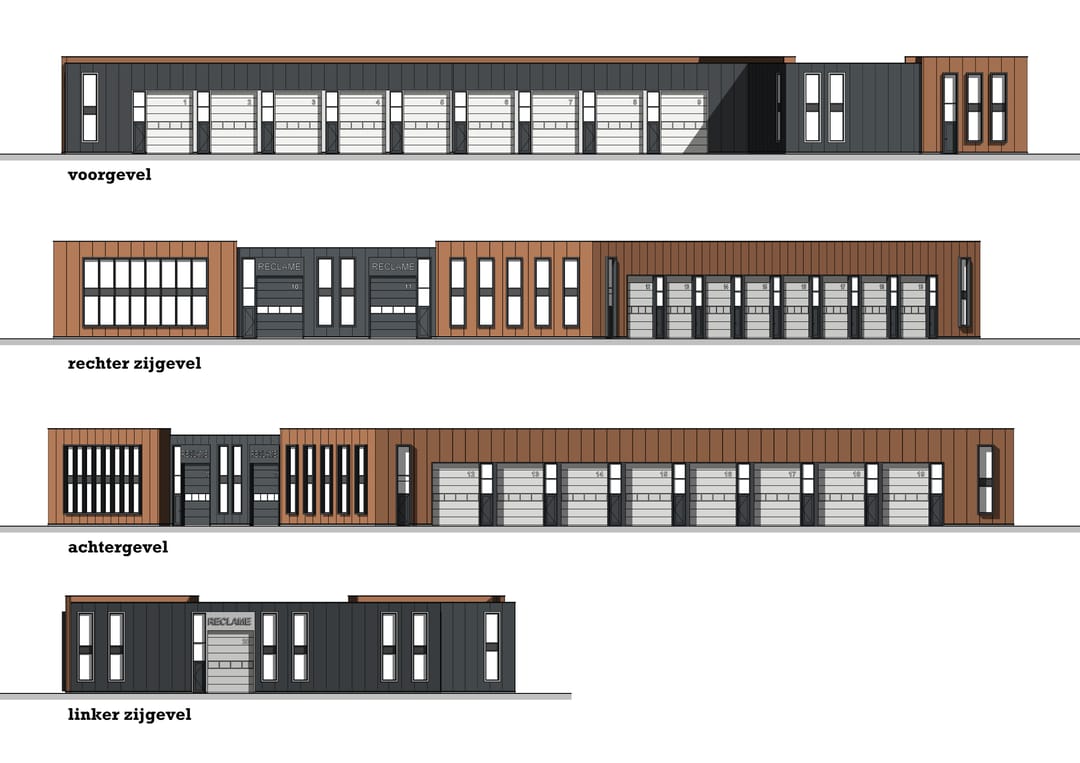 De buitenzijde van het bedrijfsverzamelgebouw wordt bekleed met duurzame materialen, wat zorgt voor een moderne en representatieve uitstraling. Naast het gebruik als vestigingslocatie voor uw onderneming of als opslagruimte, zijn de bedrijfsunits ook uitermate geschikt als beleggingsobject.