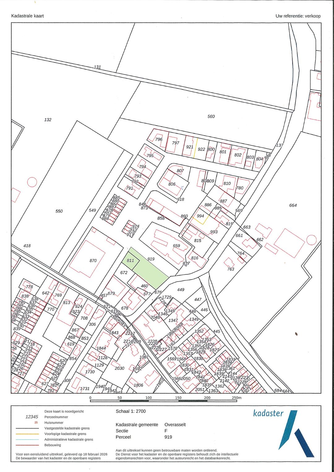 Het perceel heeft een oppervlakte van 1621 m2. De situering van te verkopen kavel is geel gearceerd weergegeven op de bijgevoegde kaart.