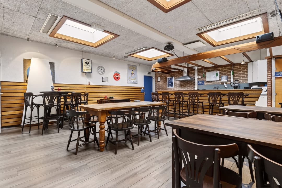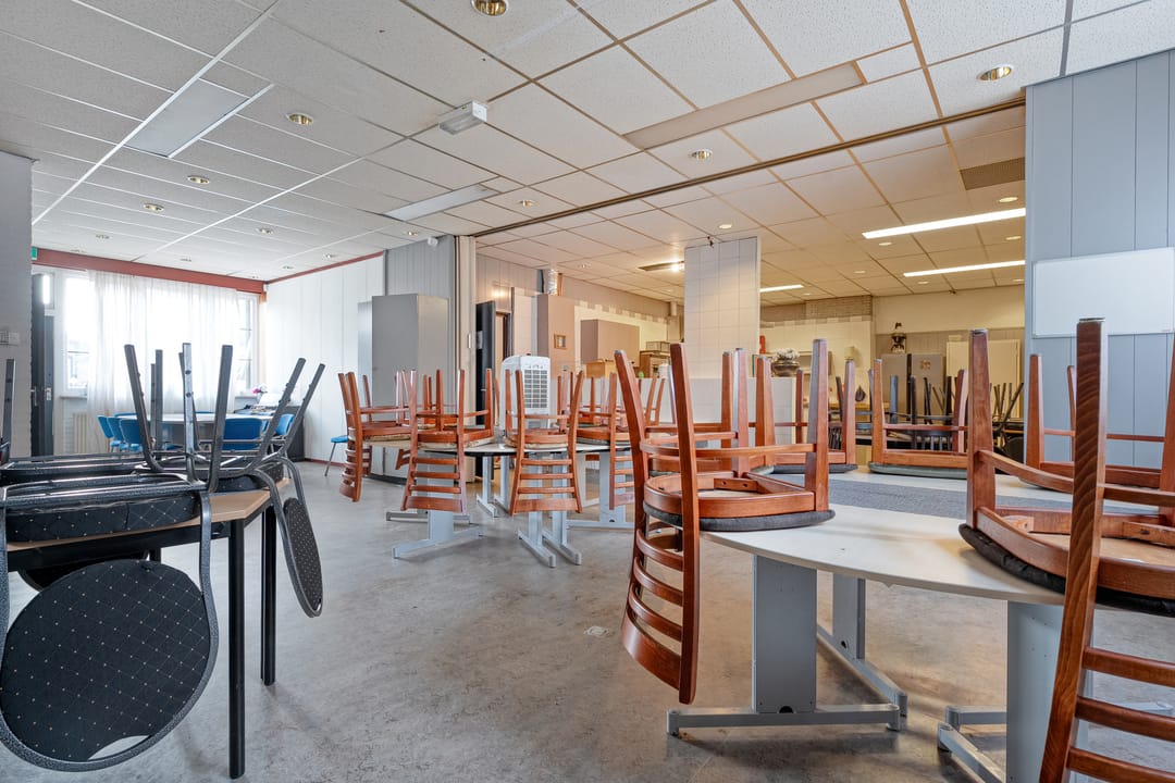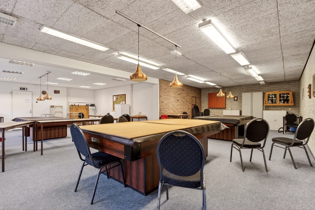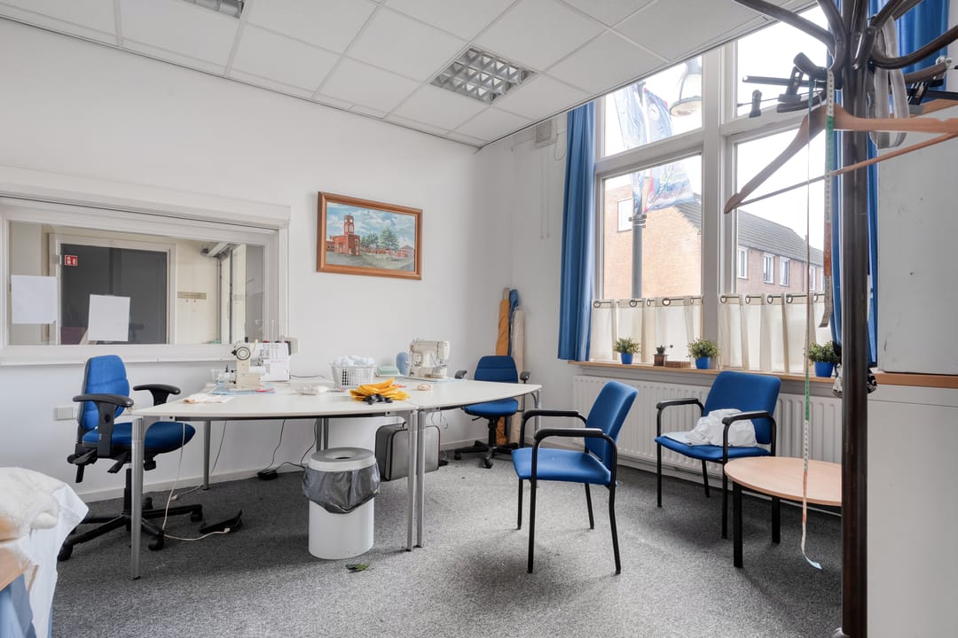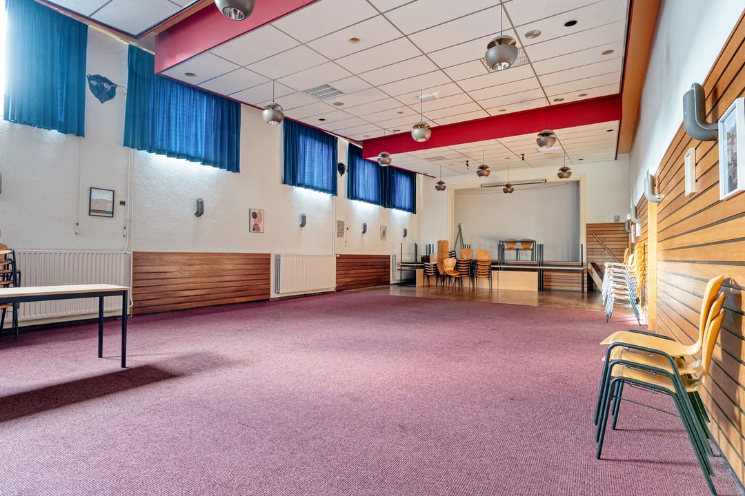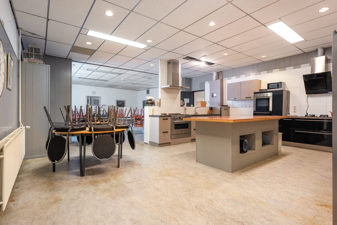 Het pand beschikt over een zeer functionele en veelzijdige indeling. Op de begane grond en verdieping zijn meerdere vergaderruimtes en kantoorruimtes aanwezig, evenals een ruime eetzaal met keukenfaciliteiten. Daarnaast beschikt het gebouw over een theaterzaal, geschikt voor bijeenkomsten, presentaties of culturele activiteiten. Op de eerste verdieping bevindt zich bovendien een appartement met dakterras, wat het object extra bijzonder maakt. De verschillende ruimtes maken het pand uitermate geschikt voor diverse doeleinden en combinaties daarvan.