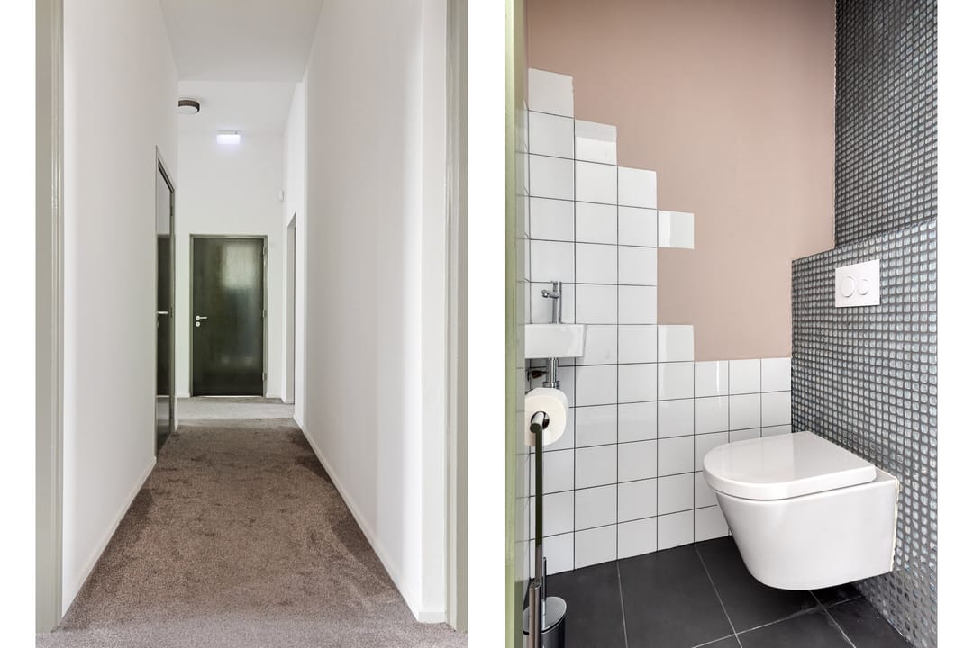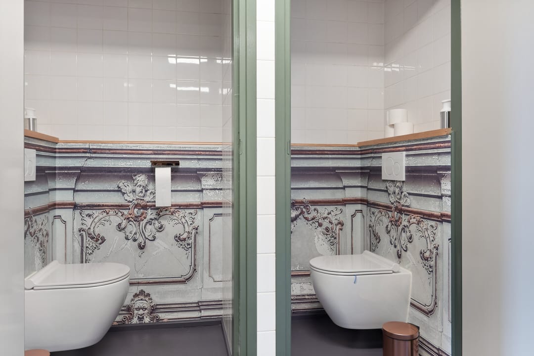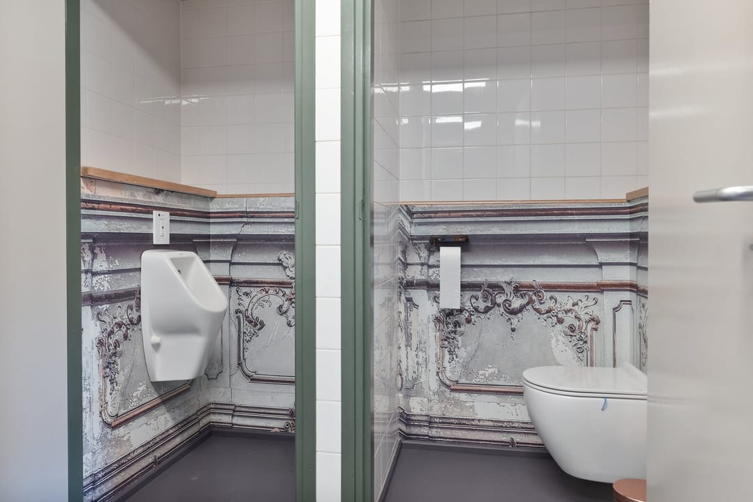4-tal betegelde toiletten waarvan 1 urinoir;