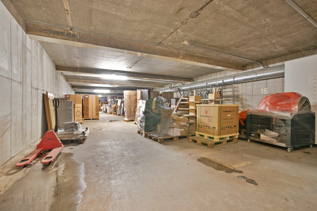 Totaal circa 450 m² parkeerruimte/bedrijfsruimte in het souterrain.