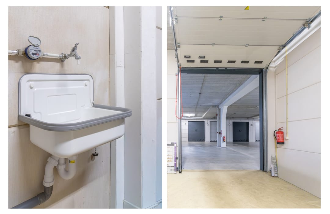 Het betreft een nette, inpandige unit gelegen welke enerzijds bereikbaar is via het centrale trappenhuis en anderzijds met een grote, functionele autolift, waardoor auto’s en/of goederen eenvoudig, veilig en droog naar de 1e verdieping zijn te transporteren.
