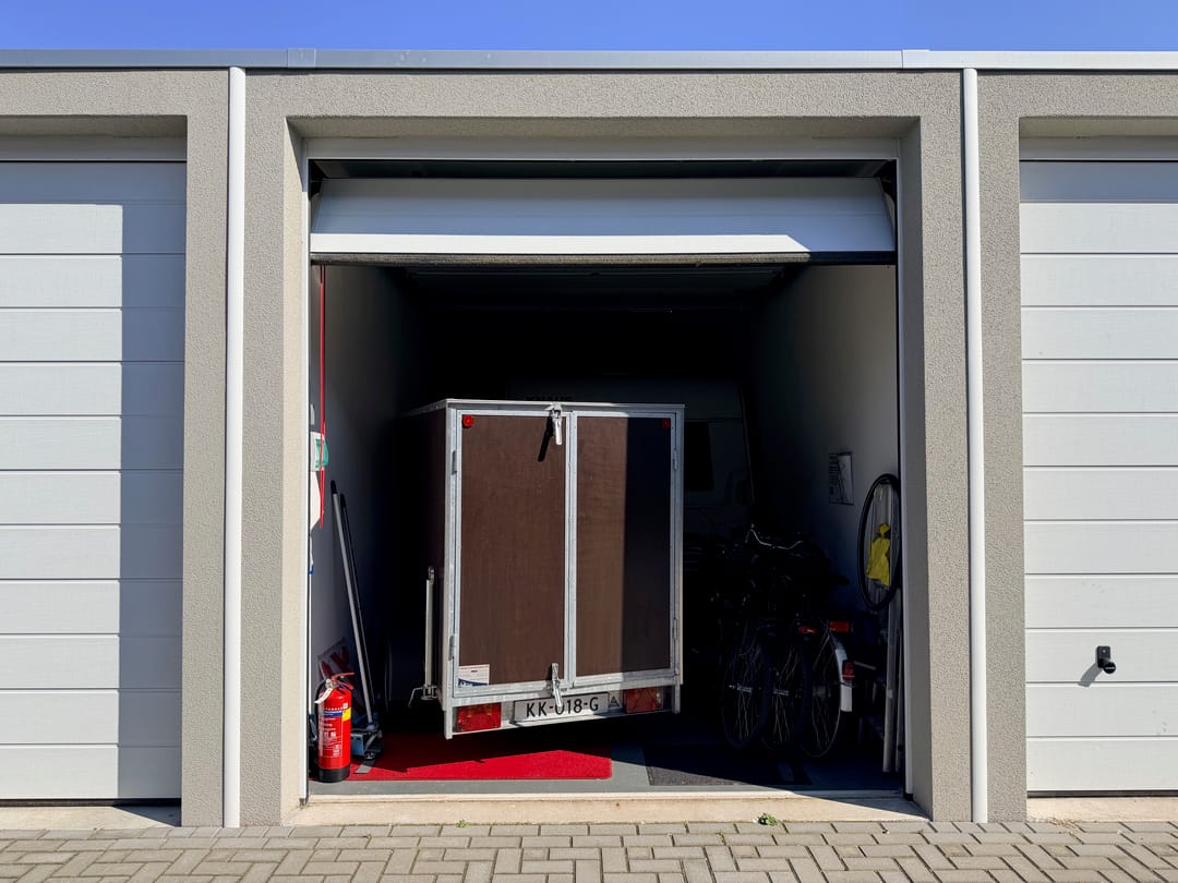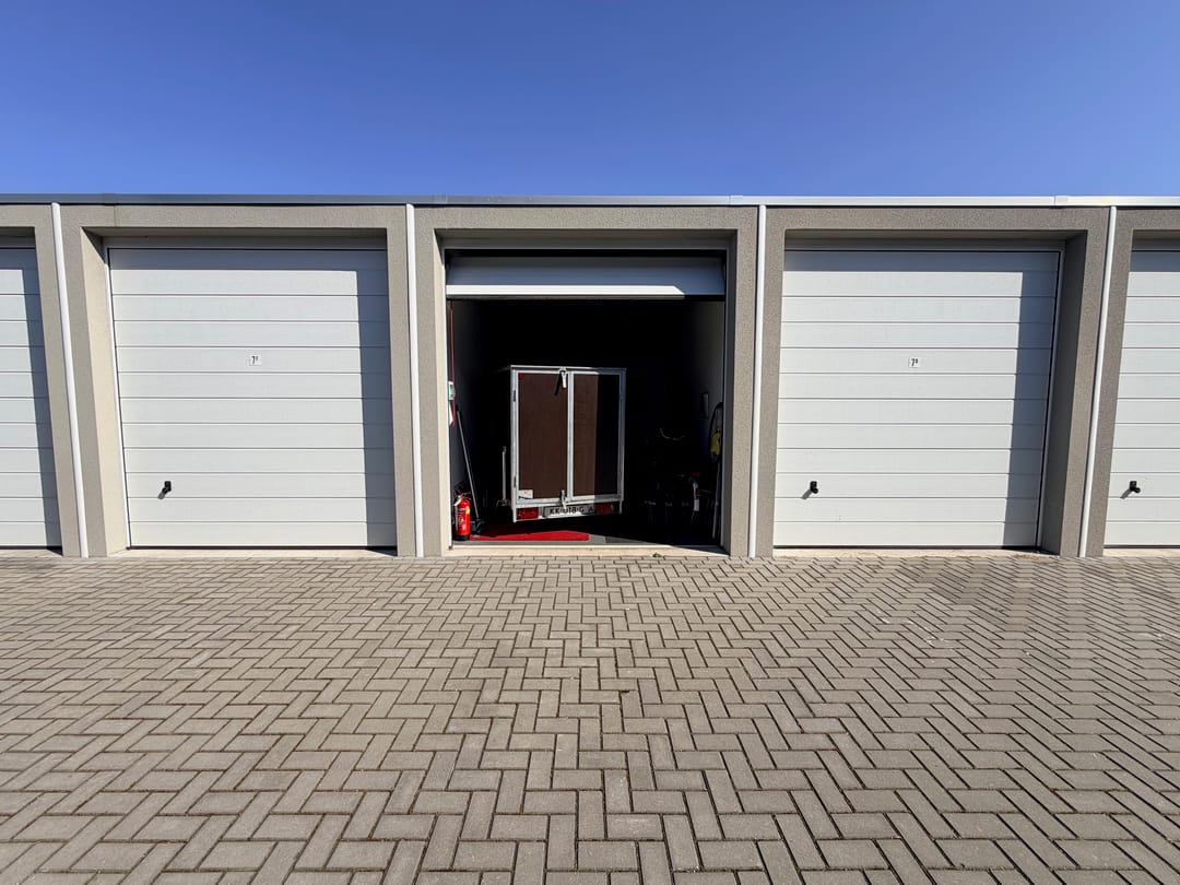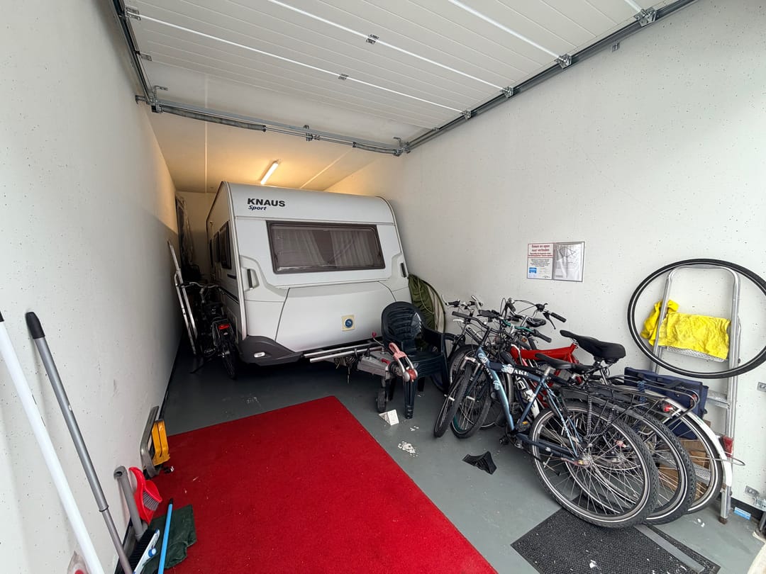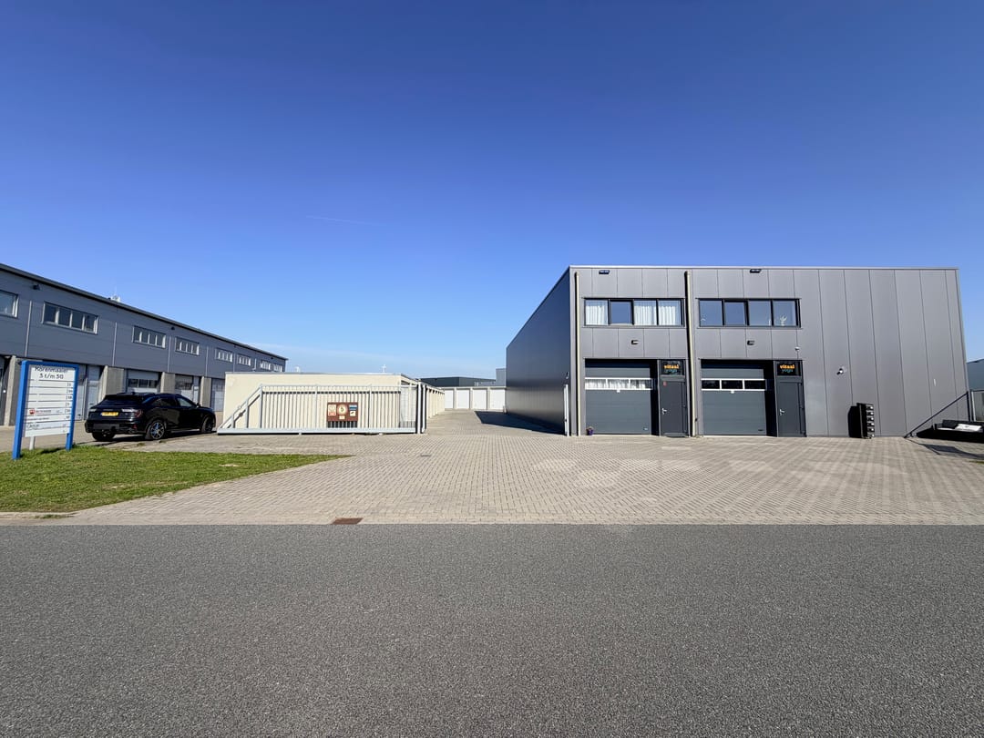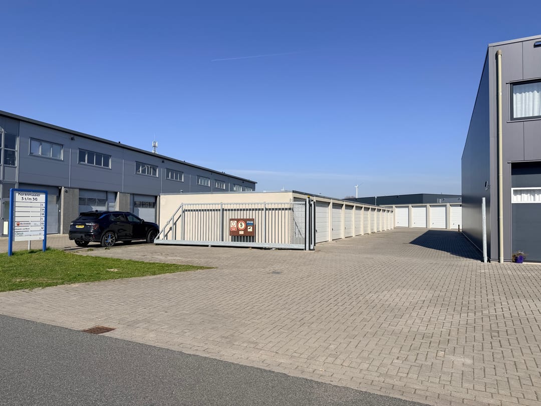 De netjes afgewerkte ruimte is voorzien van een betonvloer, elektra met krachtstroom, verlichting en overheaddeur (doorrijhoogte 2,98 m). Er is een gezamenlijk toilet en het buitenterrein is afsluitbaar met een elektrische poort.