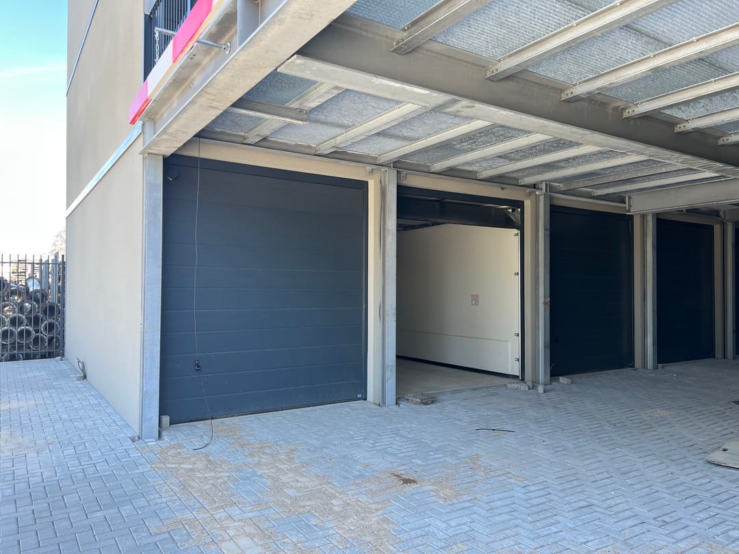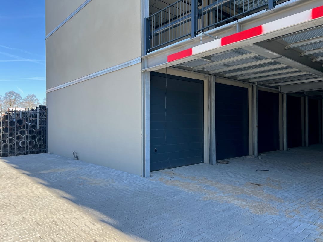 Multifunctionele nieuwbouw garagebox van ca. 29,25 m² b.v.o. gelegen op de begane grond, direct aan de entree (de 2e box), van het nieuwbouw garageboxencomplex aan de Leidekkerstraat 4 op bedrijventerrein Donkersloot-Noord in Ridderkerk, op zeer korte afstand van de rijkswegen A15 en A16.