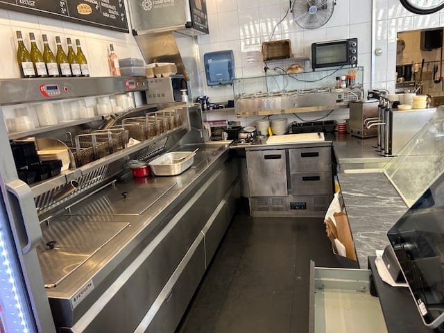Binnen zijn er diverse zitplaatsen en ook het terras biedt een fijne plek voor de klanten. De gemoderniseerde snackbar is voorzien van een uitgifteluik (24A), professionele keuken, en opslagruimte.
