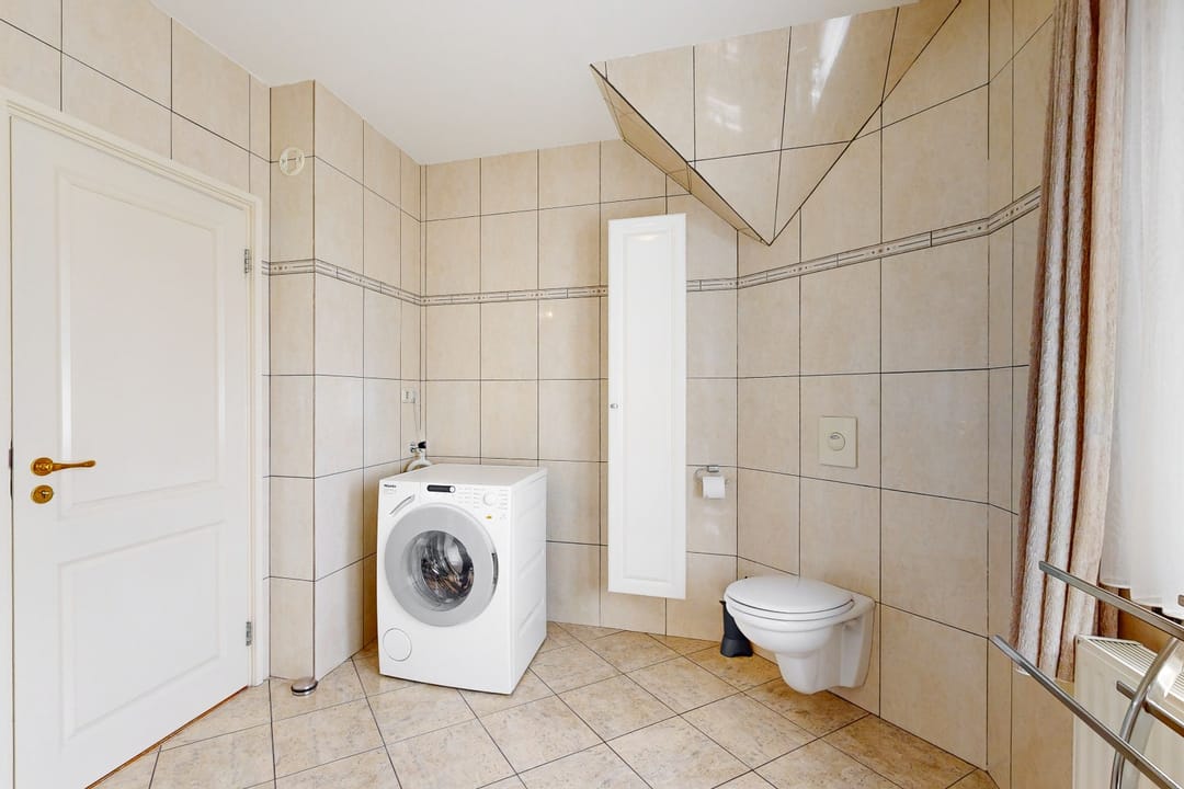 2 ruime slaapkamers (22 m² en 16 m²) en een badkamer (11 m²) met douche, ligbad, wastafel met meubel en een zwevend toilet. Tevens bevindt de witgoedaansluiting zich in de badkamer.