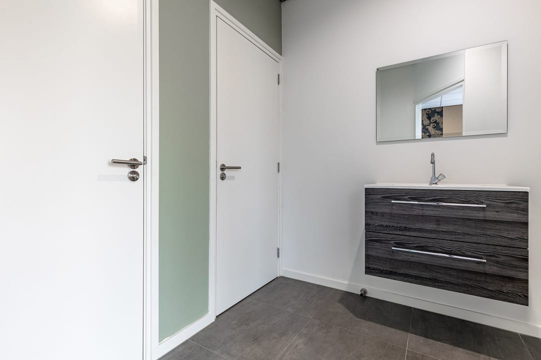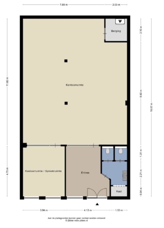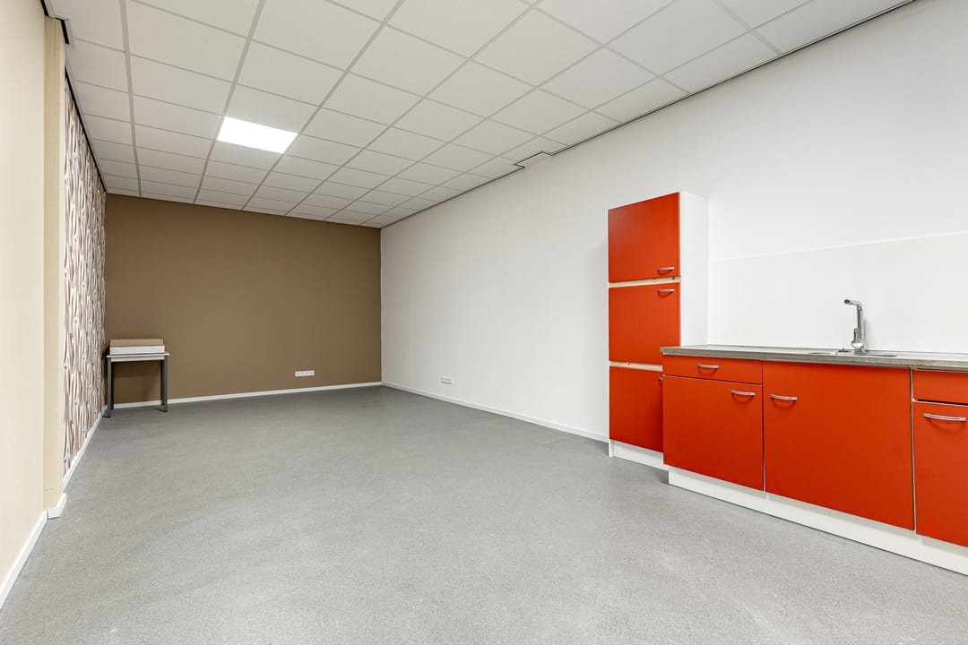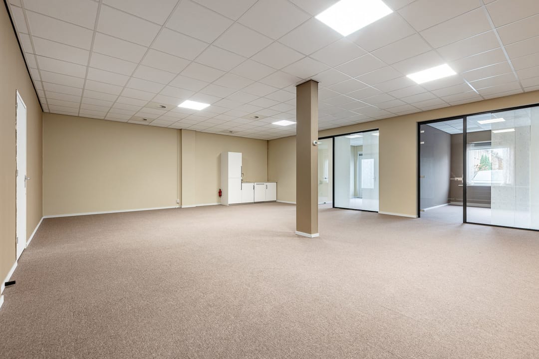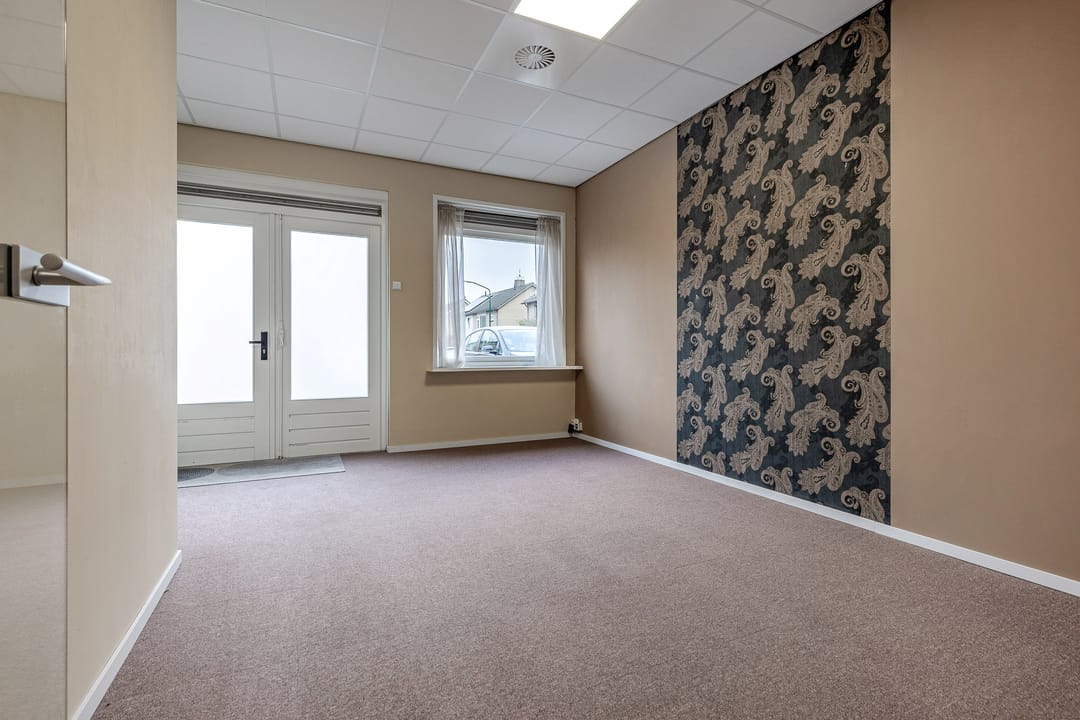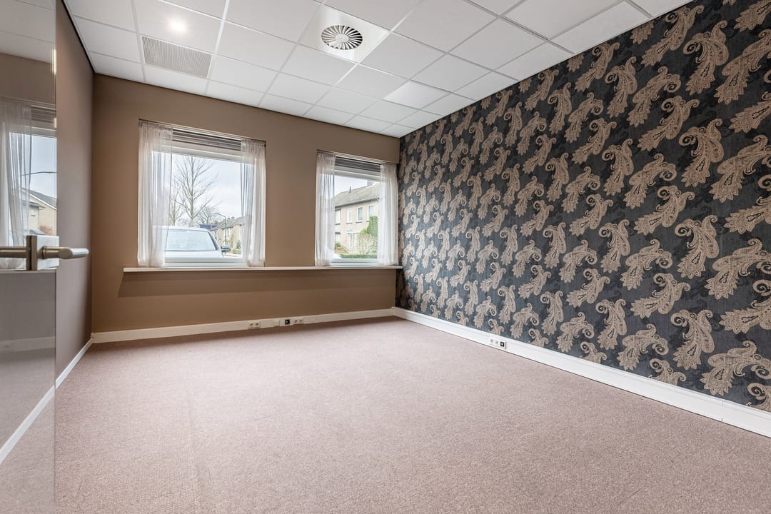 De kantoor-/praktijkruimte bevindt zich op de begane grond en beschikt over een volledig zelfstandige, eigen entree. Deze etage omvat een royale ontvangstzone, twee spreekkamers en een grote open ruimte met een toiletruimte.