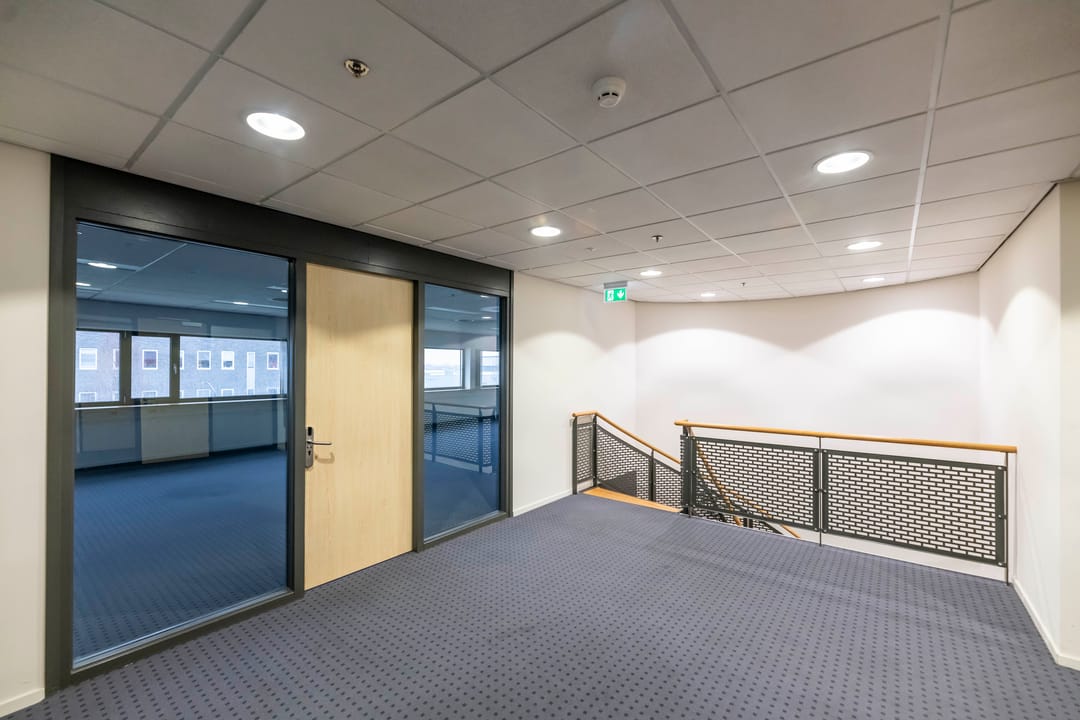 De kantoorruimte is toegankelijk via eigen entree op de begane grond met trapopgang en lift naar de verdieping. De kantoorruimte van ca. 645 m² omvat een open kantoortuin met veel daglichttoetreding en toegang tot het dakterras en diverse kantoor-/spreekkamers. De kantoorruimte van ca. 148 m² bevindt zich aan de voorzijde en heeft eigen luxe pantry. De kantoorruimte van ca. 159 m² bevindt zich aan de achterzijde en beschikt over eigen luxe pantry en toegang tot dakterras. De verdieping kan in zijn geheel als in delen worden gehuurd. Aan de voorzijde bevinden zich 20 parkeerplaatsen, deels voorzien van laadpaal.