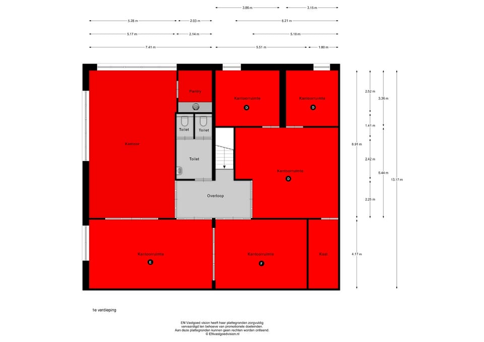 Kantoorruimte D, E en F van ca. 117 m² BVO: € 1.375,- per maand, excl. BTW.