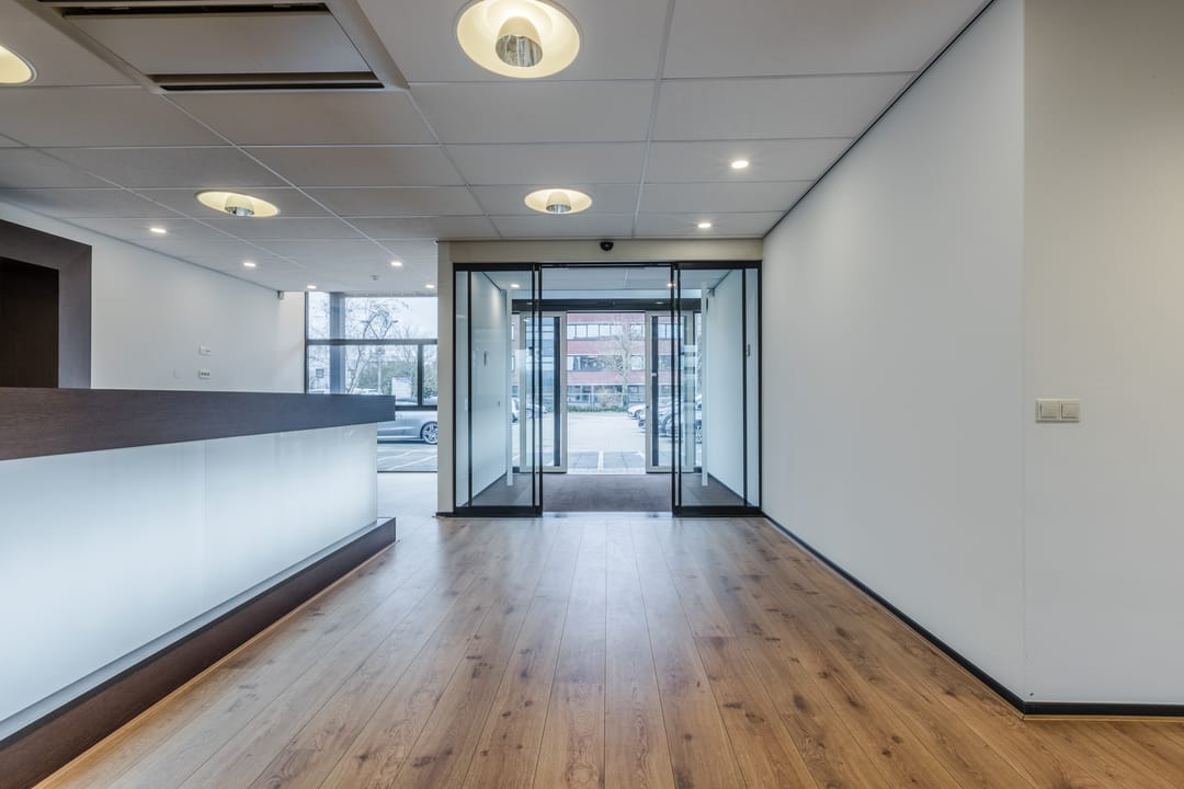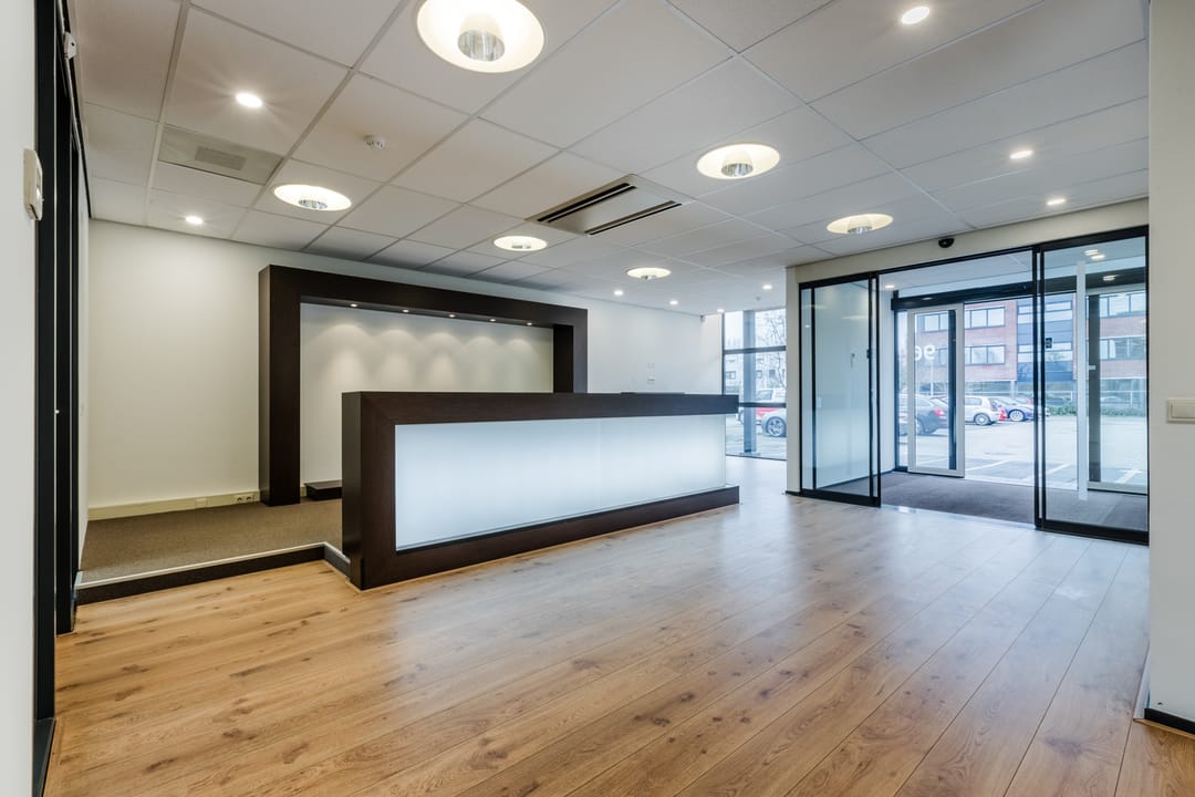 Representatief en hoogwaardig kantoorpand van circa 620 m², verdeeld over vier verdiepingen en flexibel te huren per twee of drie lagen of als geheel. Het markante hoekpand beschikt over grote glaspartijen, wat zorgt voor veel daglicht en een prettige werkomgeving. De entree is verzorgd en professioneel, met automatische schuifdeuren, een tochtsluis en een nette ontvangstbalie.