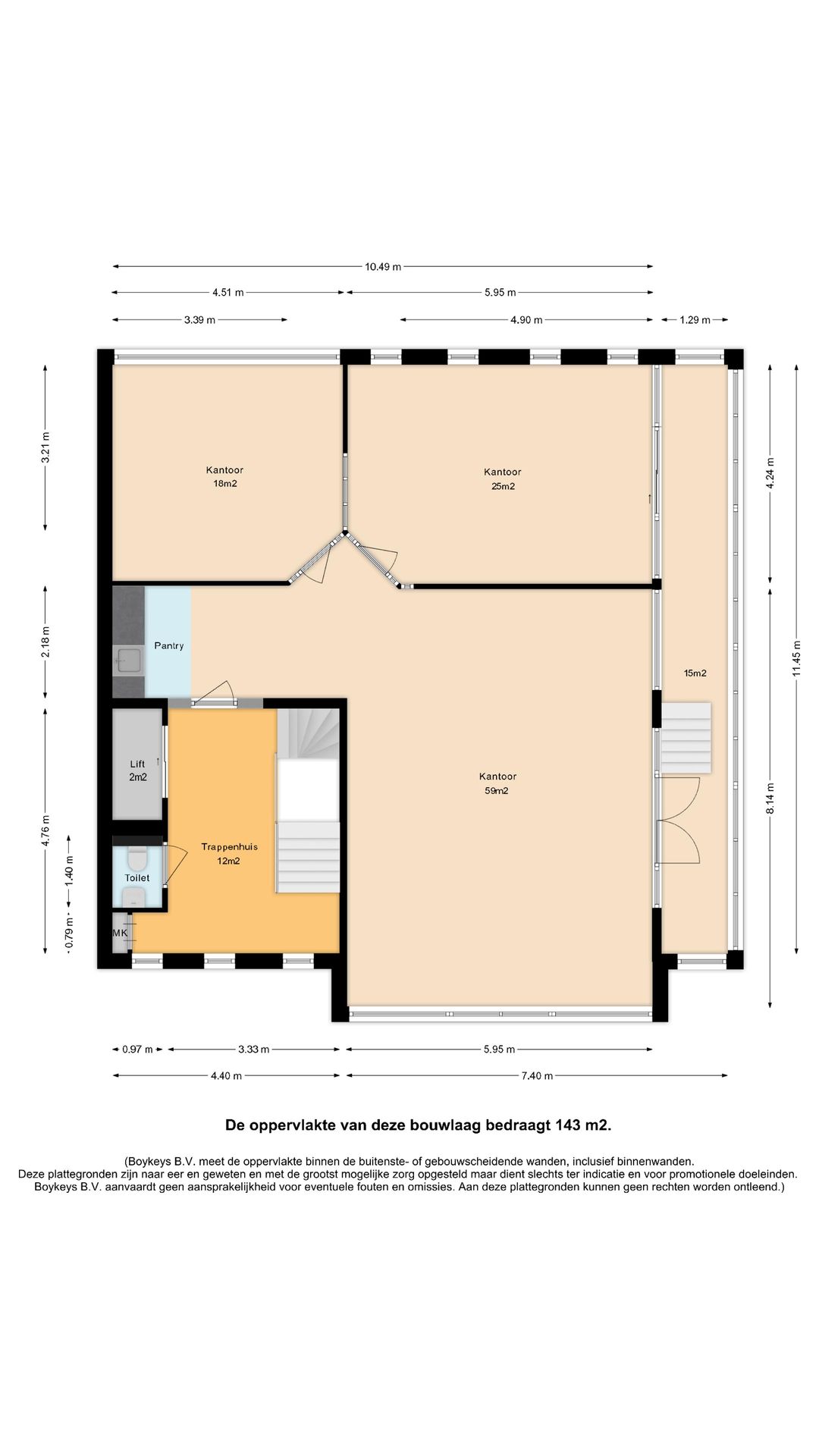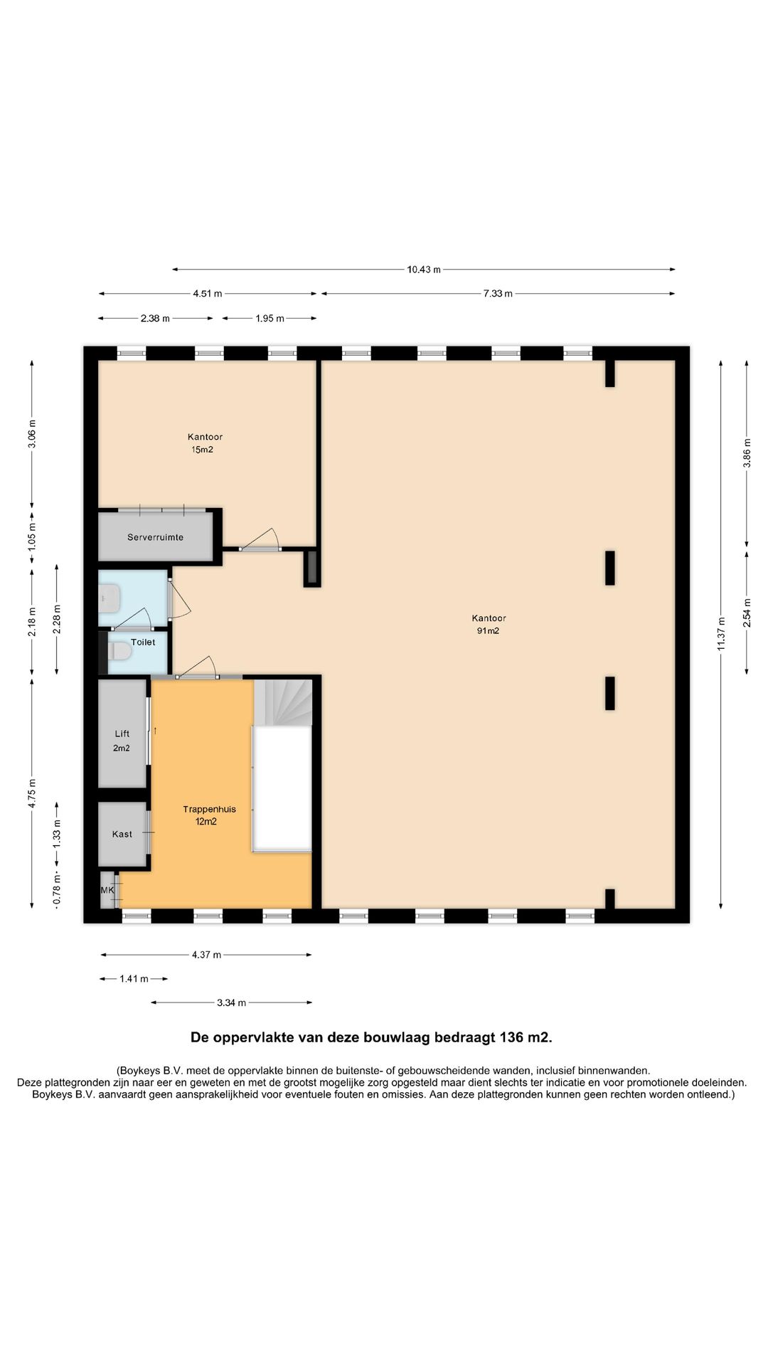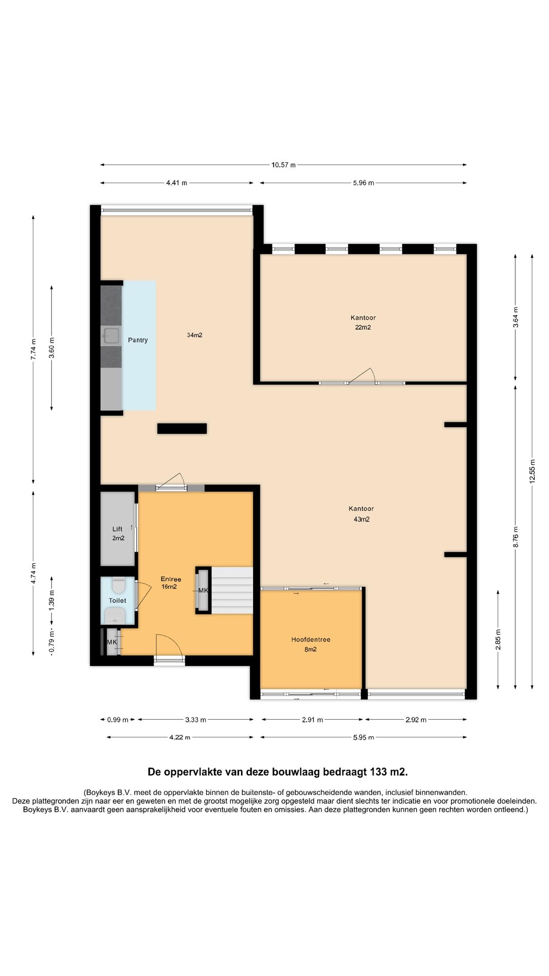 Kantoor: € 130,- per m² per jaar excl. btw.