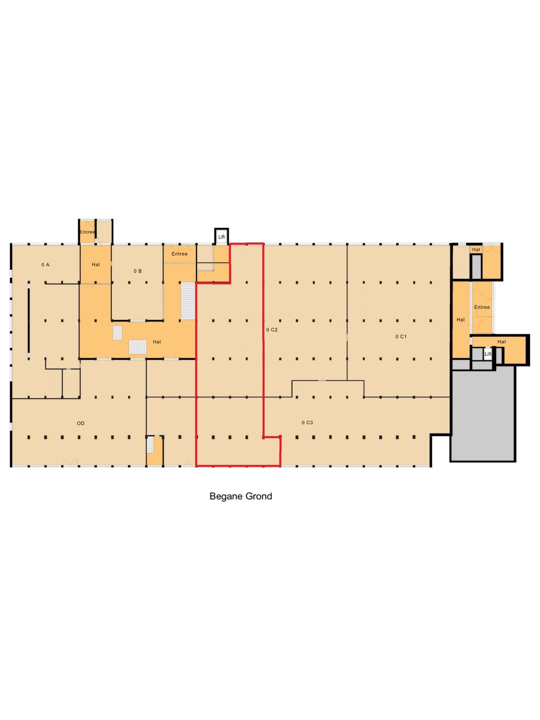 Voor de verhuur is circa 5.129 m² beschikbaar, verdeeld over drie bouwlagen; de begane grond, eerste verdieping en tweede verdieping.
