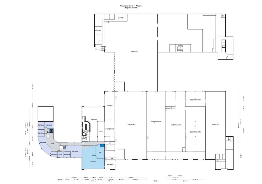 De te huren kantoorruimte met showroom bevindt zich op de begane grond en heeft een totale oppervlakte van circa 752 m², met de mogelijkheid tot uitbreiding met 326 m² op de begane grond. De ruimte biedt tevens toegang tot een eigen tuin.