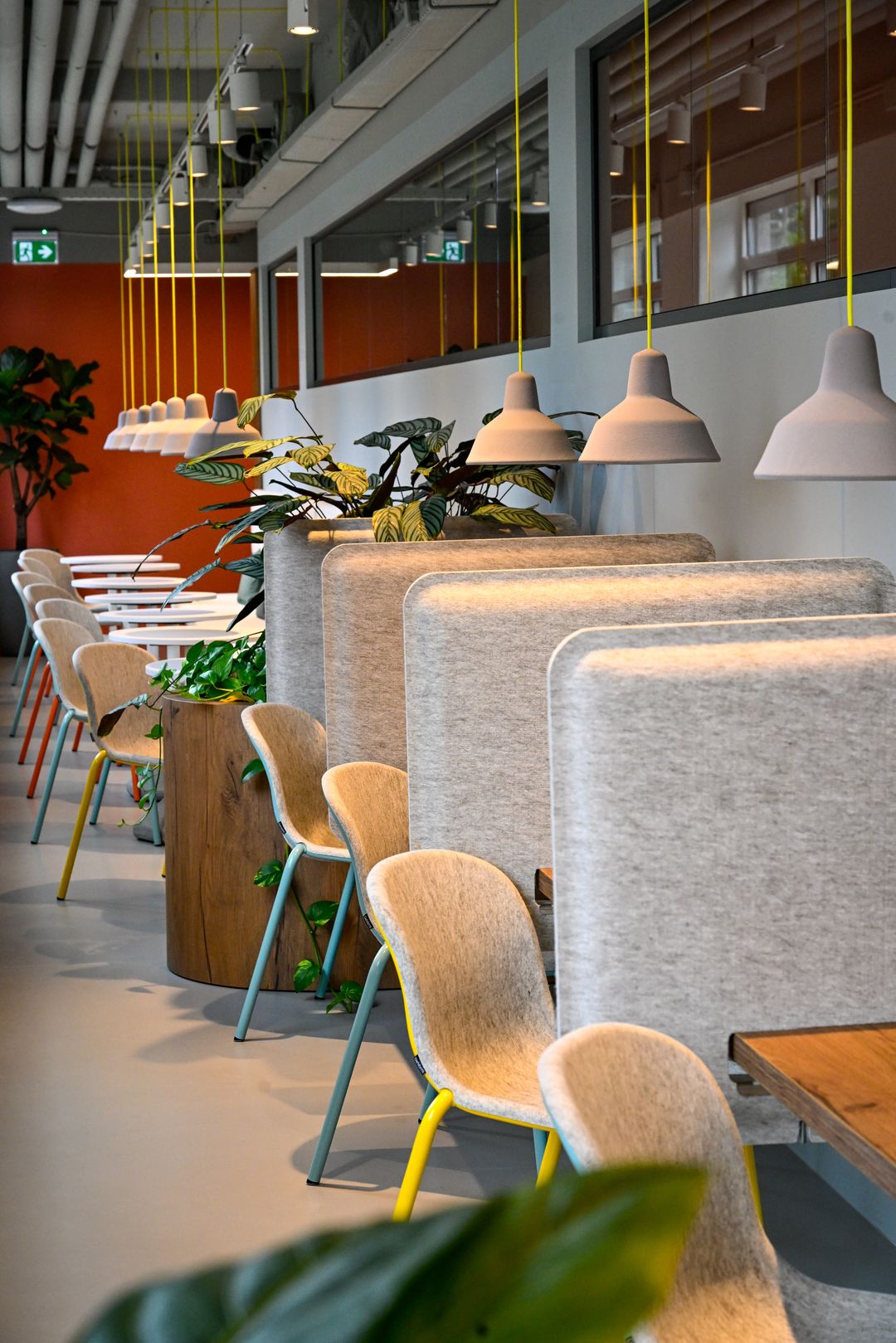 • Akoestische systeemplafonds voorzien van beeldschermvriendelijke verlichtingsarmaturen;