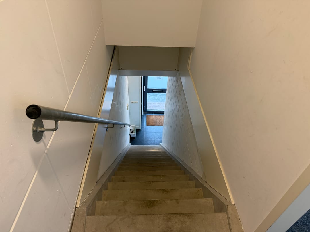 Ruime entreehal met trap naar de kantoorruimte op de verdieping.