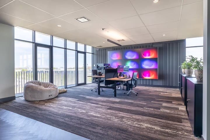 Op de kantoorverdieping aangekomen wordt u verrast door de royale verdiepingshoge raampartijen die zorgen voor een overvloed aan daglicht en een fraai groen uitzicht bieden. De verdiepingen beschikken over zelfstandige voorzieningen, zoals een toiletgroep en pantry en zijn zeer flexibel indeelbaar, waarbij zowel open werkvloeren als aparte kantoren en vergaderruimtes gerealiseerd kunnen worden.