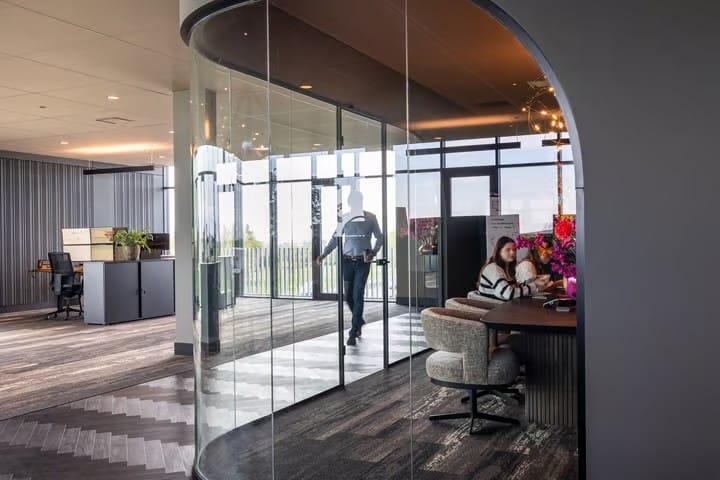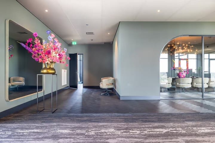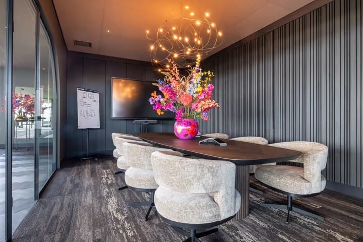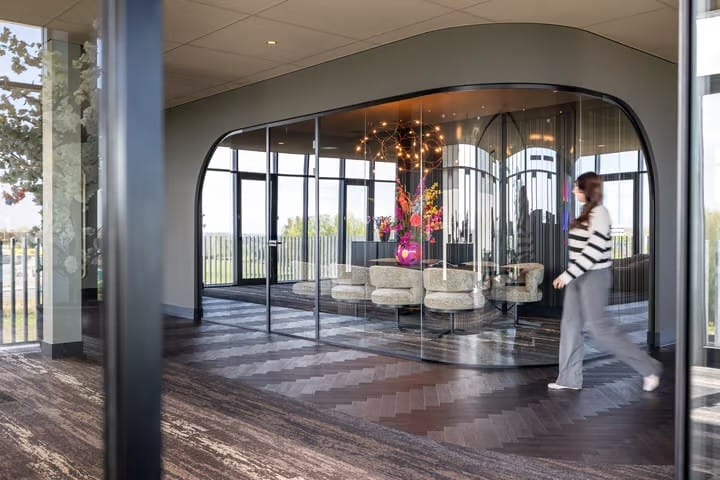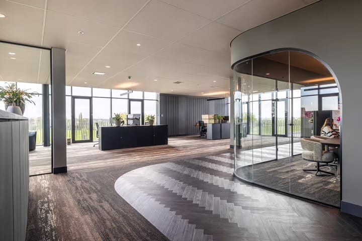 Bezoekers en medewerkers parkeren op het fraaie aangelegde afsluitbare parkeerterrein rondom het gebouw en worden vervolgens op de begane grond verwelkomd in een zeer representatieve entree, waar gebruik is gemaakt van hoogwaardige en warme materialen. Dit zorgt voor een uitnodigende sfeer en een professionele eerste indruk – precies de uitstraling die u als organisatie wilt neerzetten. Hier bevindt zich tevens een representatieve vergader- / trainingsruimte die bij beschikbaarheid flexibel kan worden gehuurd. De lift en het fraaie trappenhuis bieden toegang tot de eigen kantoorverdieping(en).