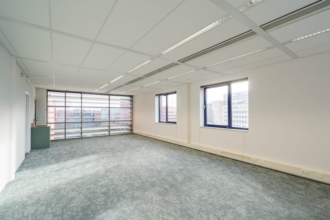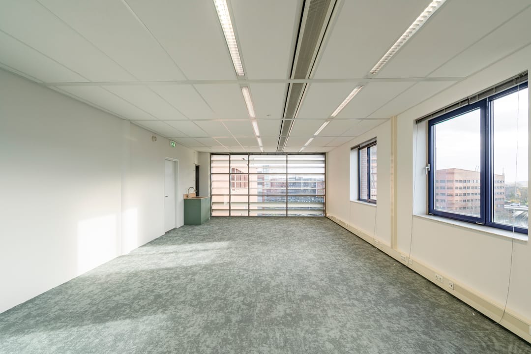 - Lichtinval: Veel natuurlijke lichtinval door ramen aan weerszijden van de kantoorvloeren.