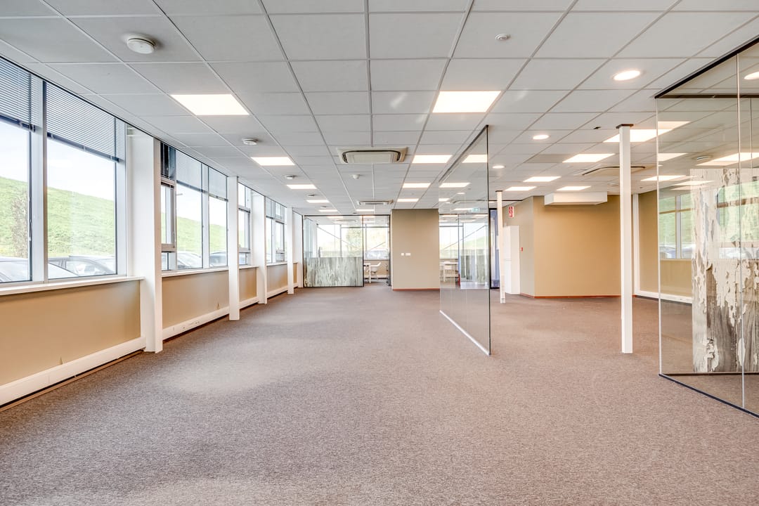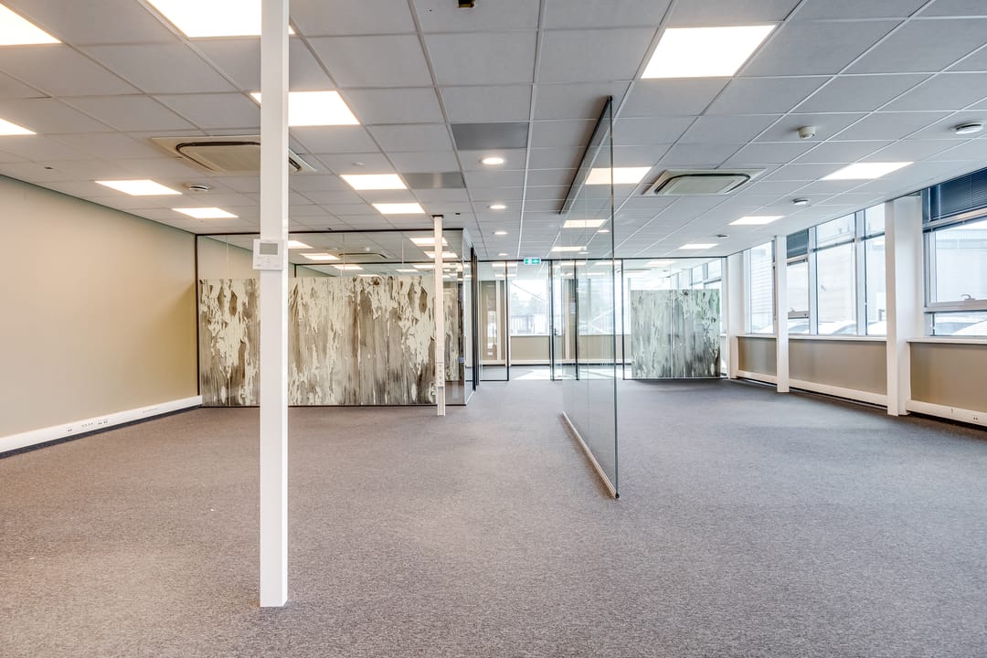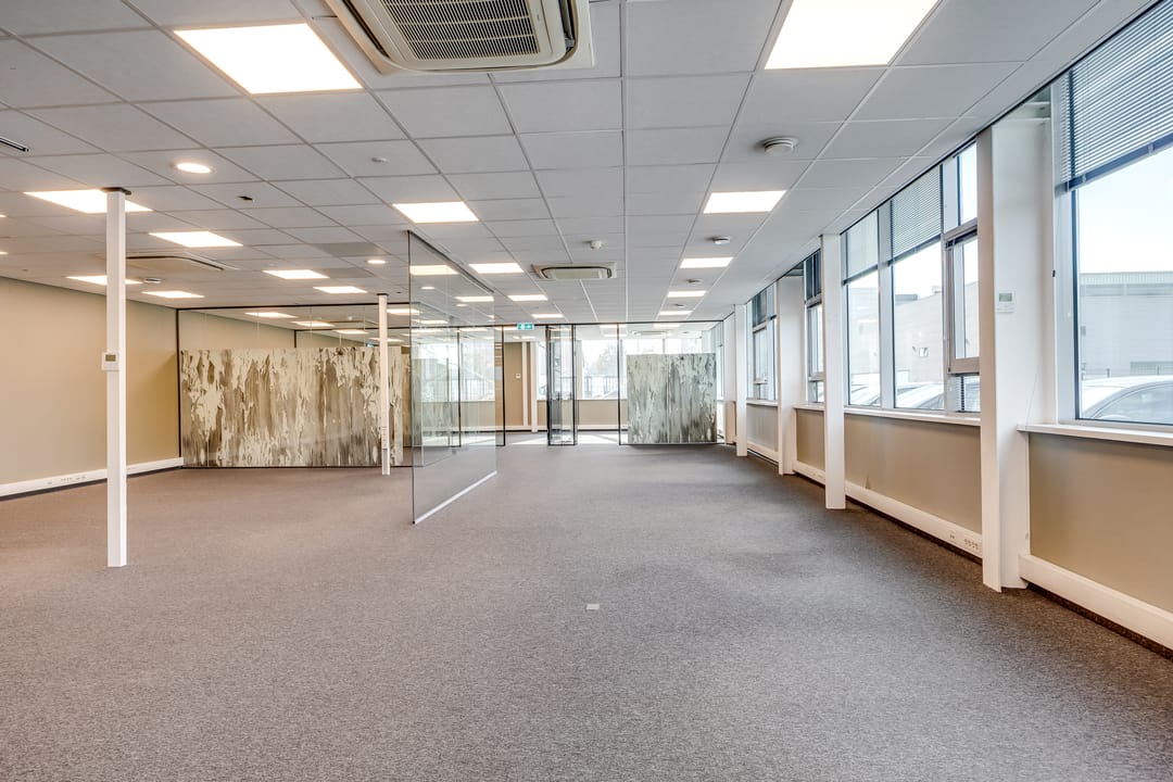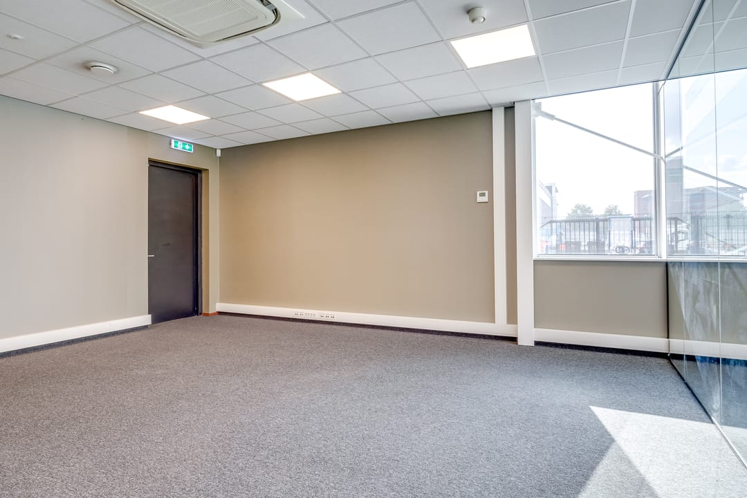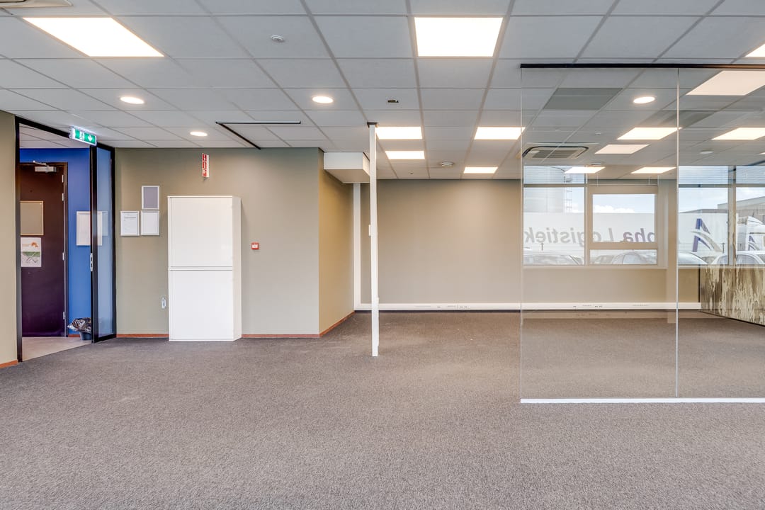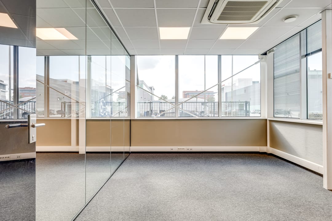 Deze kantoorruimte wordt opgeleverd met stoffen vloerafwerking. De ruimte is gedeeltelijk ingedeeld in een vijftal kantoorruimten. Deze ruimten zijn voorzien van glaswanden en deuren. Het overige van de kantoorruimte is geschikt als open kantoortuin. Alle ruimten zijn voorzien van een systeemplafond met verlichting en airconditioning. De te openen raampartijen zijn voorzien van zonwering en bieden veel ruimte voor natuurlijk daglicht. Verder beschikt de ruimte over sanitaire voorzieningen en een pantry.