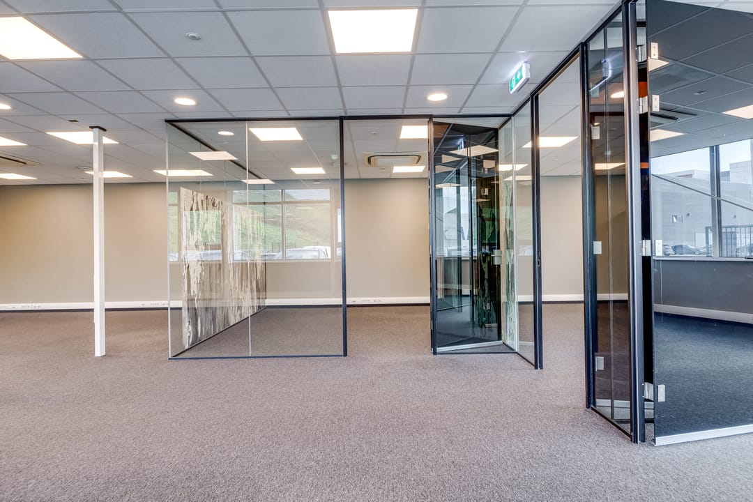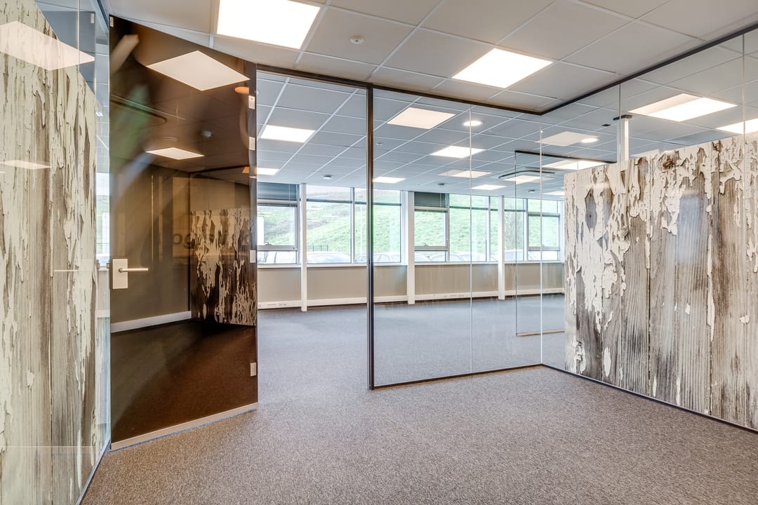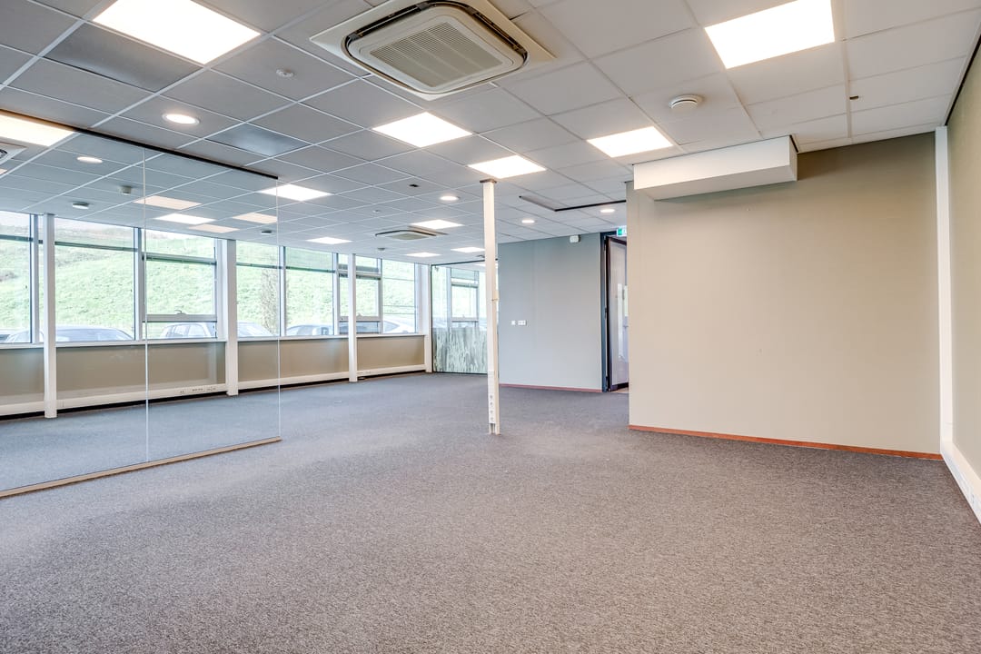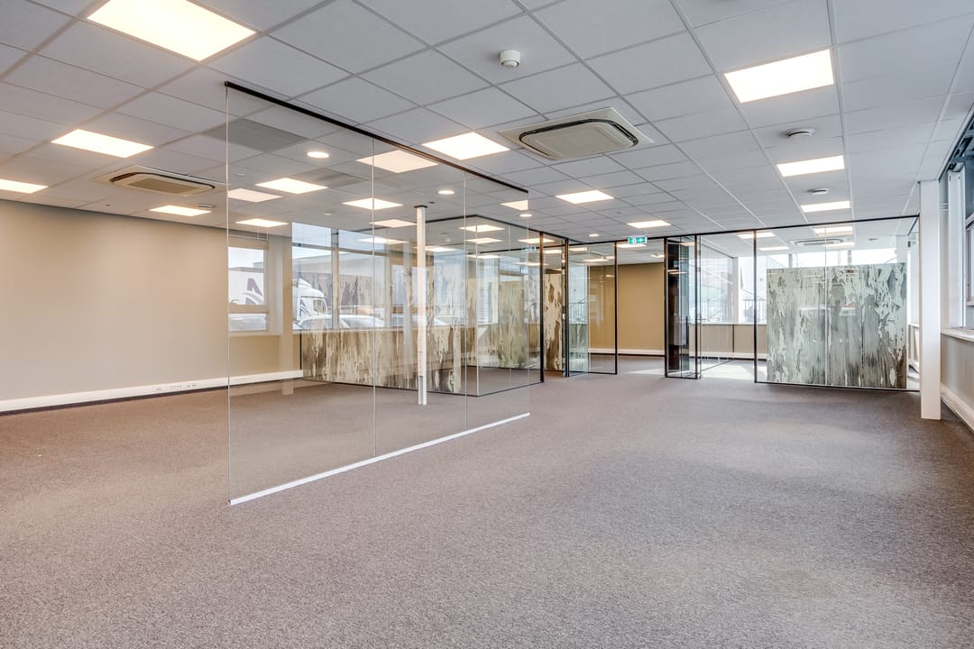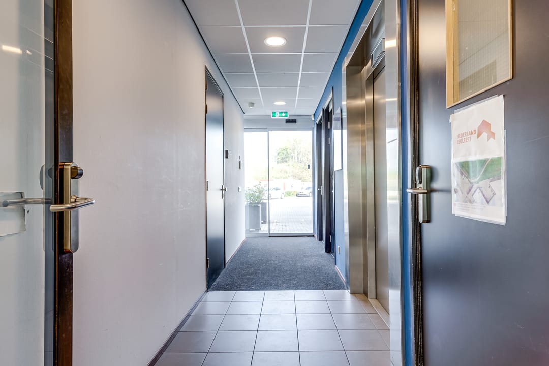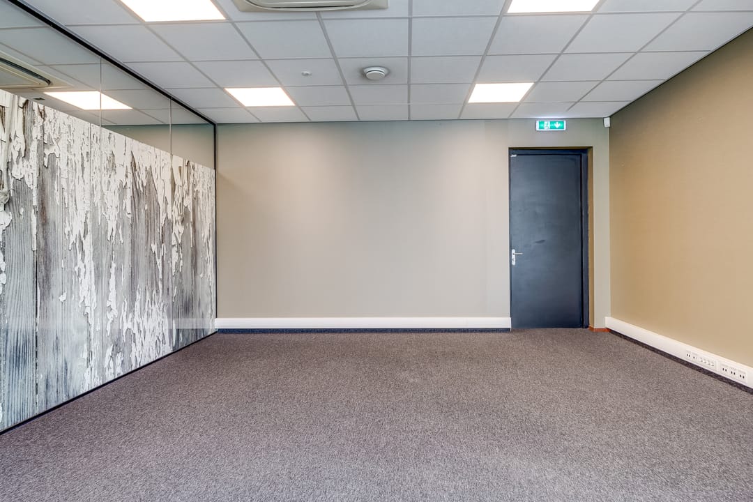 Deze kantoorruimte wordt opgeleverd met stoffen vloerafwerking. De ruimte is gedeeltelijk ingedeeld in een vijftal kantoorruimten. Deze ruimten zijn voorzien van glaswanden en deuren. Het overige van de kantoorruimte is geschikt als open kantoortuin. Alle ruimten zijn voorzien van een systeemplafond met verlichting en airconditioning. De te openen raampartijen zijn voorzien van zonwering en bieden veel ruimte voor natuurlijk daglicht. Verder beschikt de ruimte over sanitaire voorzieningen en een pantry.