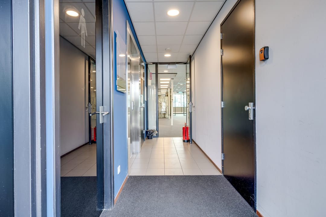 Wat direct aan het bedrijfspand opvalt zijn de gevelhoge raampartijen. Dit zorgt voor veel daglicht op alle verdiepingen. Via een gedeelde entree aan de zijkant van het pand is de kantoorruimte bereikbaar.