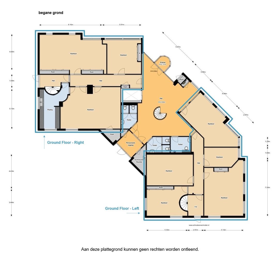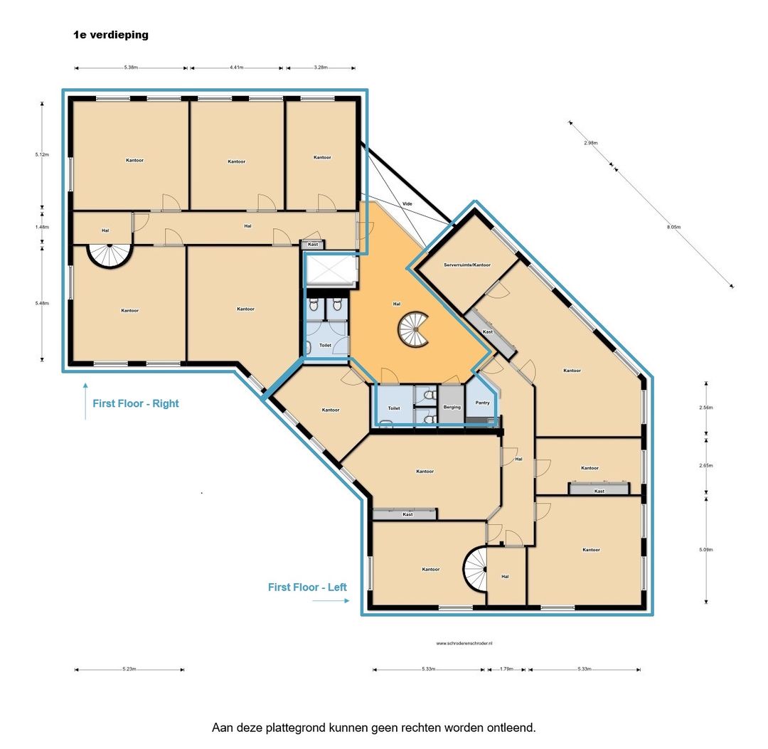 De oppervlakte is met grootst mogelijke zorgvuldigheid gemeten, maar biedt geen garantie en er kunnen geen rechten aan worden ontleend.