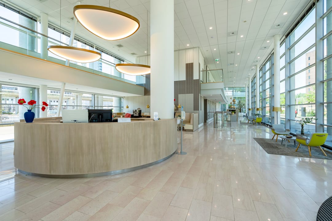 In gebouw A, treft u een bemande receptie met koffie-faciliteit en een fraaie vergaderzaal voor gemeenschappelijke gebruik. Op de begane grond van dit gebouw is een restaurant aanwezig dat wordt geëxploiteerd door We Canteen. Zij bieden belegde broodjes, soepen, een uitgebreide salade-bar en verse dranken. In het gebied Sloterdijk is in de afgelopen jaren flink geïnvesteerd om het iedereen zo aangenaam mogelijk te maken. Dit heeft als gevolg gehad dat het voorzieningenniveau flink is verbeterd. Niet alleen zijn er meerdere goede hotels aanwezig, in/rond station Sloterdijk vindt u diverse winkels en restaurants, zoals een Albert Heijn To Go en Starbucks. Maar ook in de directe omgeving kunt u terecht voor lunch of zakelijk diner of een borrel.