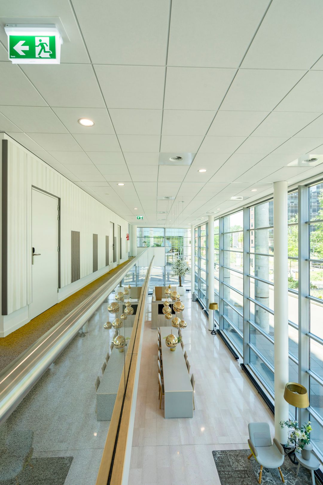 - Systeemplafond voorzien van verlichtingsarmaturen;