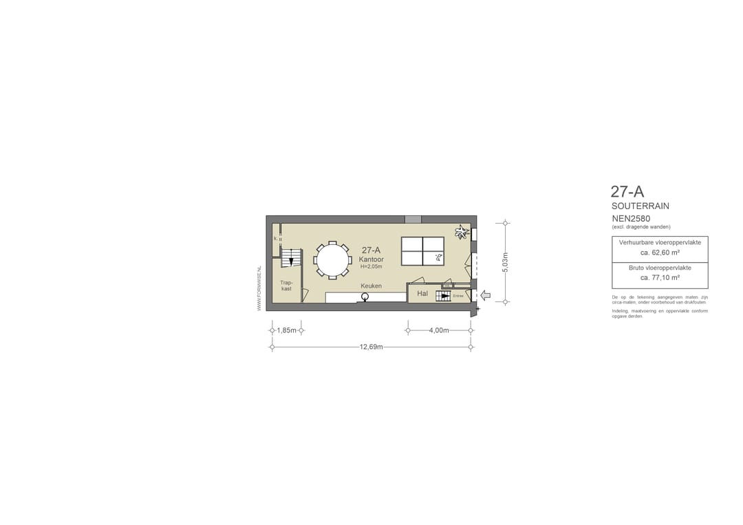 De kantoorruimte is circa 233 m² VVO en gelegen in het souterrain en op de begane grond. Het betreft de adressen Entrepotdok 27 A en B en Binnenkadijk 187. Deze verkoop omvat drie appartementsrechten welke gelegen zijn op erfpacht grond en waarvoor de voortdurende erfpacht is afgekocht tot en met 31 december 2037.