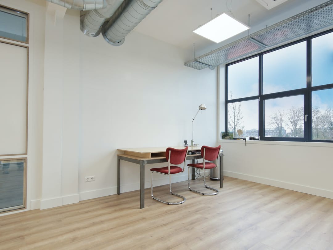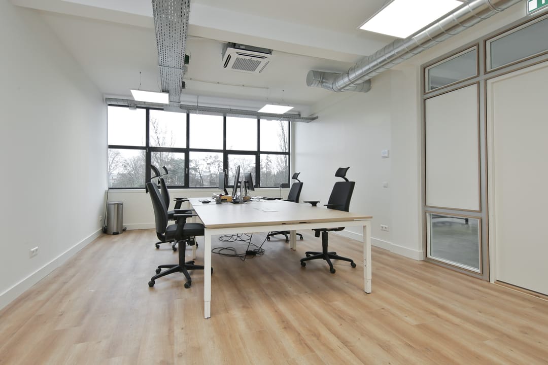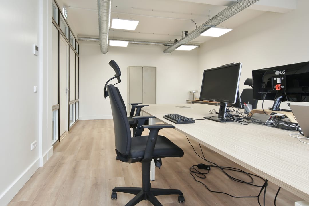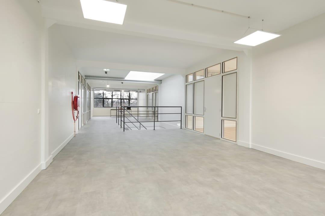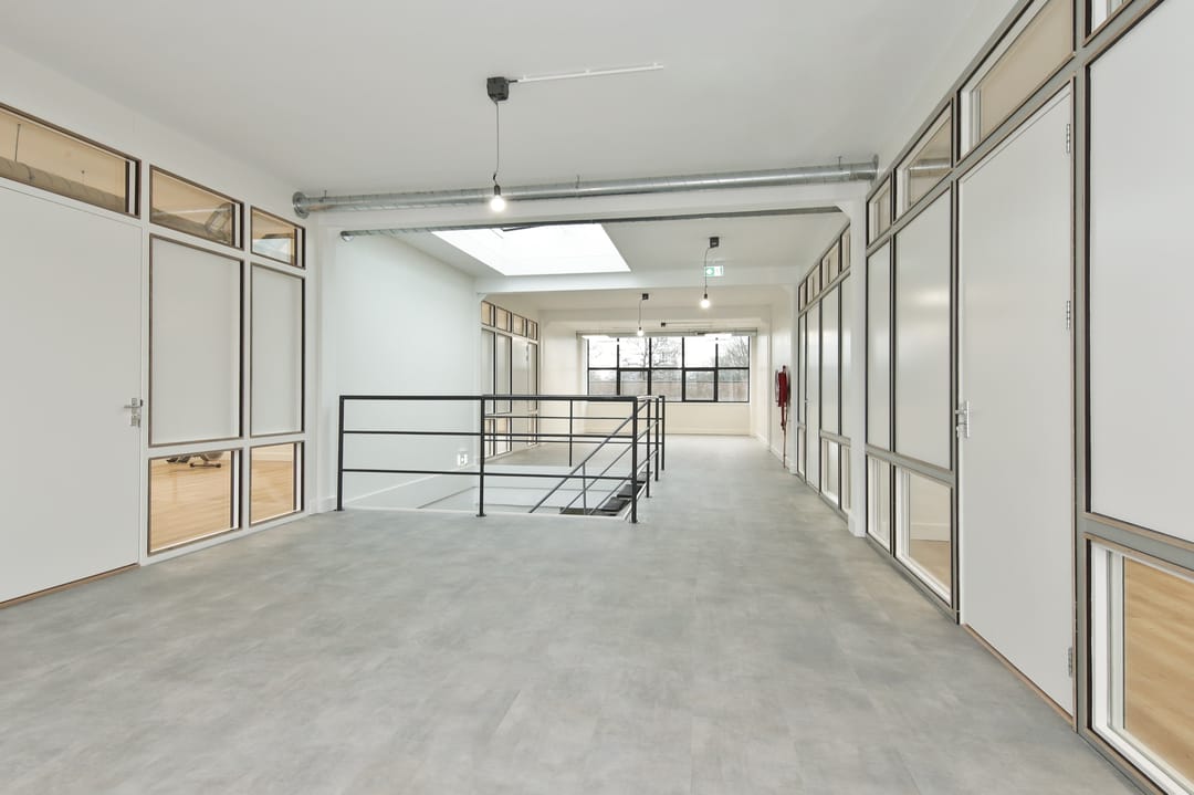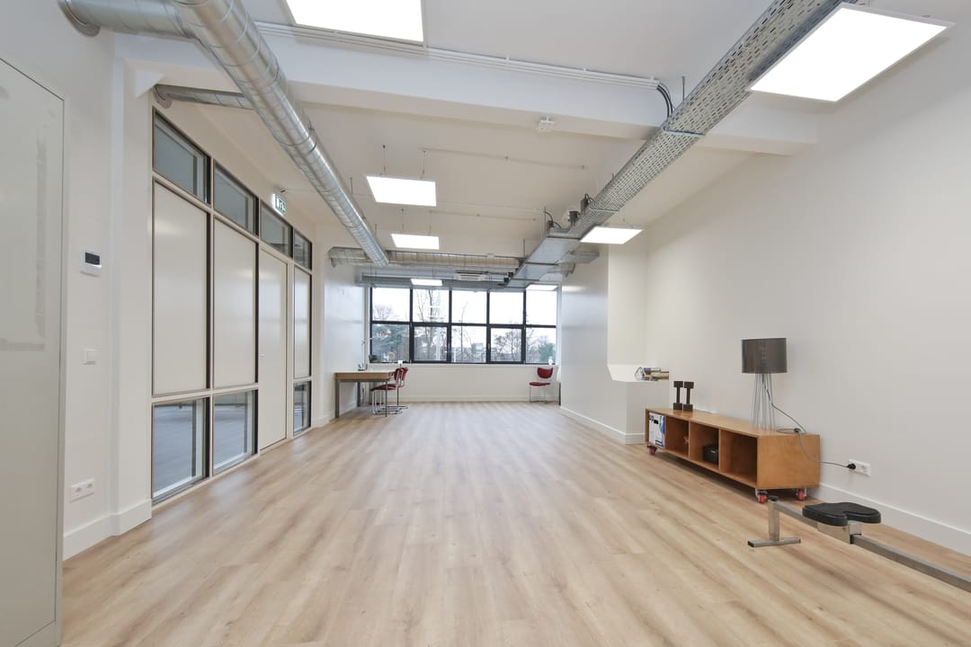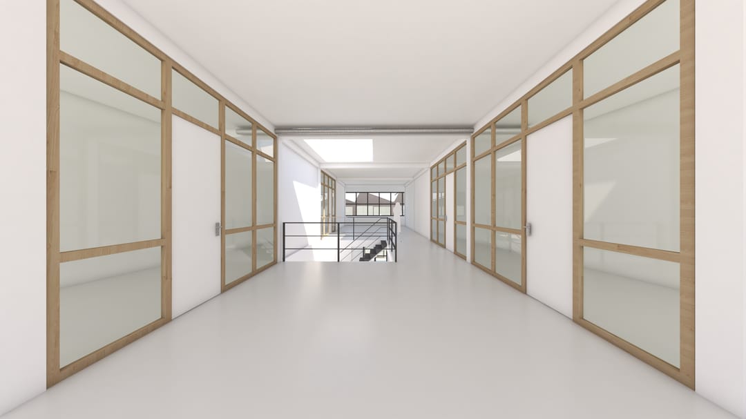 Ruime hal met twee kantoorruimtes en genoeg ruimte voor het creëren van extra werkruimtes/ belhokken.