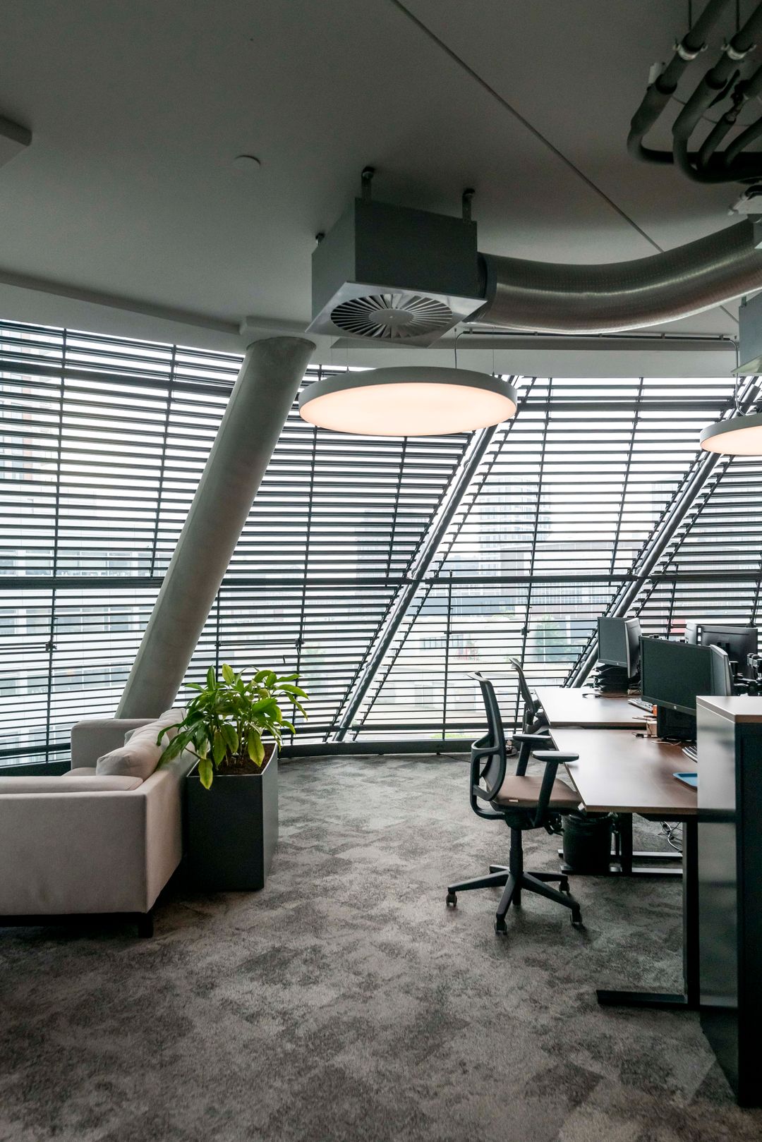- Air conditioning, mechanical ventilation, peak cooling, built-in fittings, elevators, windows can be opened, cable ducts, modular ceiling, toilet, pantry, heating and room layout