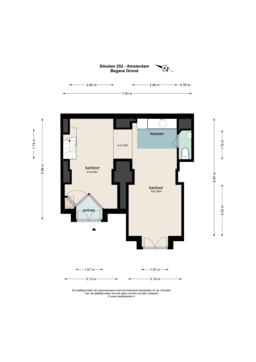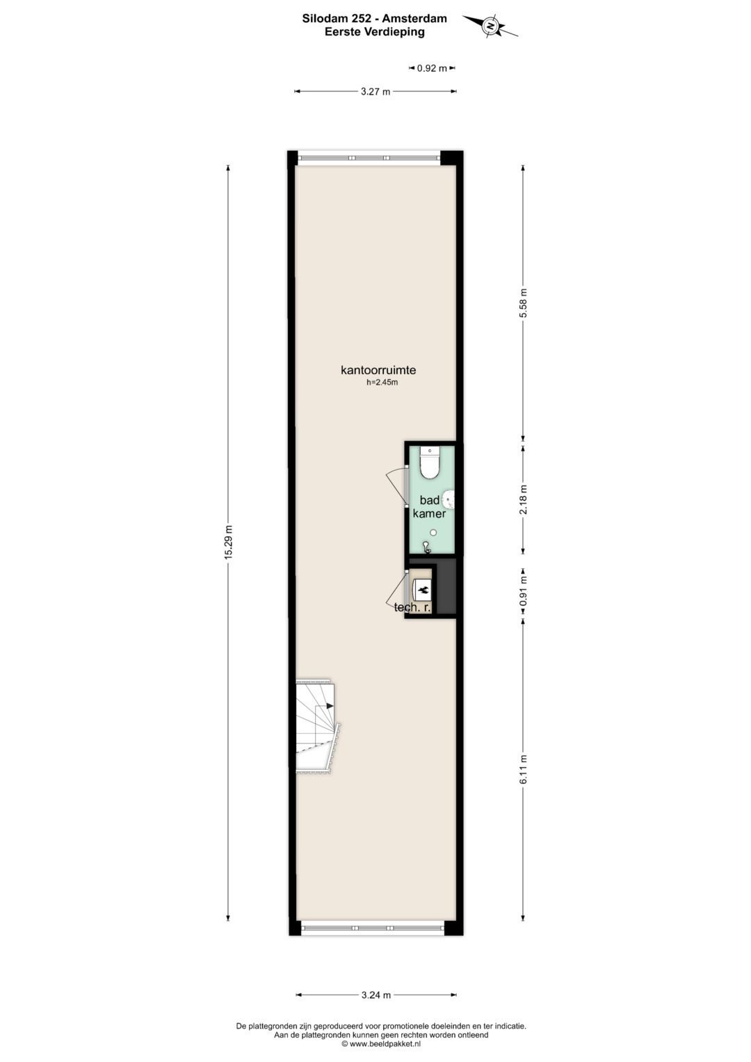 De praktische ruimte (oppervlakte 90 m²) is verdeeld over twee lagen. Op de begane grond (oppervlakte 40 m²) treft u de entree en een multifunctionele ruimte met keukenblok en toilet, welke naar eigen wens kan worden gebruikt. De eerste verdieping (oppervlakte 50 m²) is een prachtige doorzon verdieping met aan twee kanten een schitterend uitzicht. Zo ziet u aan de voorzijde de haven en aan de achterzijde het IJ. Ook hier is een toilet aanwezig en een aansluitpunt voor eventueel een (tweede) keuken.