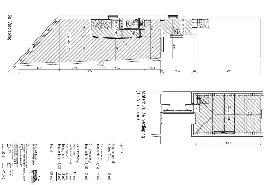 Het betreft hier een kantoorruimte van circa 88 m² gelegen op de 3e verdieping en zolder.