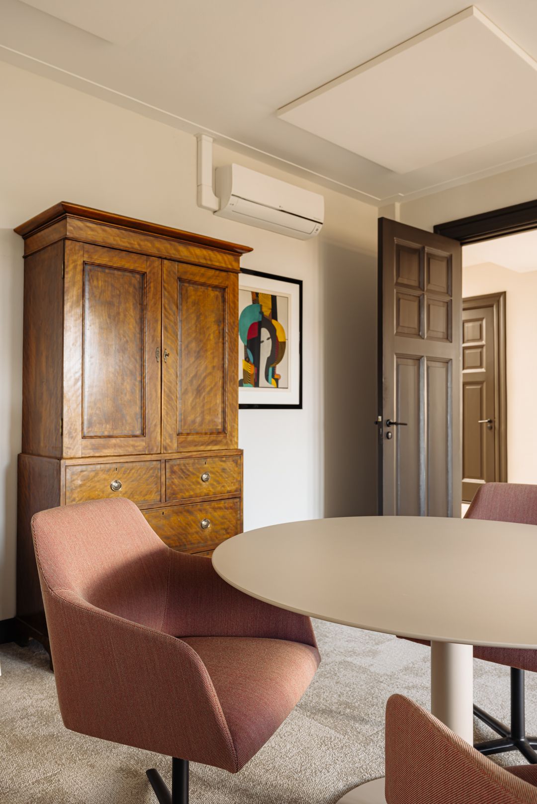 Iedere verdieping is voorzien van een open kamerindeling waardoor er naast ruimte voor werkplekken ook ruimte is voor vergaderplekken. Zowel aan de voor- als achterzijde op verschillende verdiepingen zijn openslaande deuren naar de balkons. Het gebouw heeft een aanzienlijke plafondhoogte, prachtige glas-in-lood ramen en mooie details zoals rijkelijk versierde deuren.