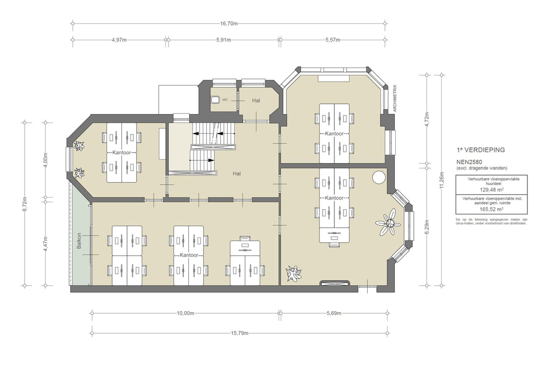Het kantoorgebouw is vanwege haar maatvoering, indeling en ligging uitermate geschikt voor zakelijke dienstverleners.