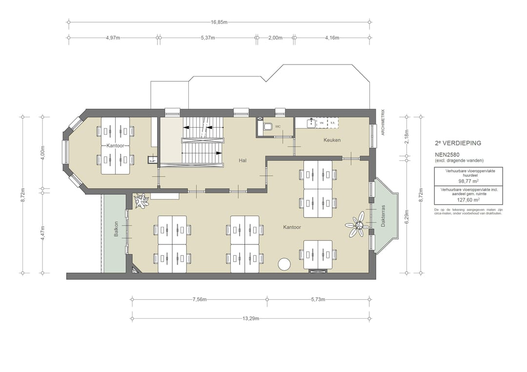 • deelverhuur mogelijk vanaf circa 127,60 m² VVO (tweede verdieping)