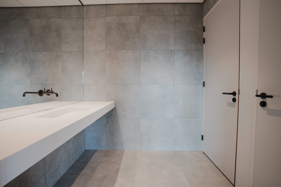 – plafond voorzien van grijs akoetisch spuitwerk voor goede geluidsabsorptie;