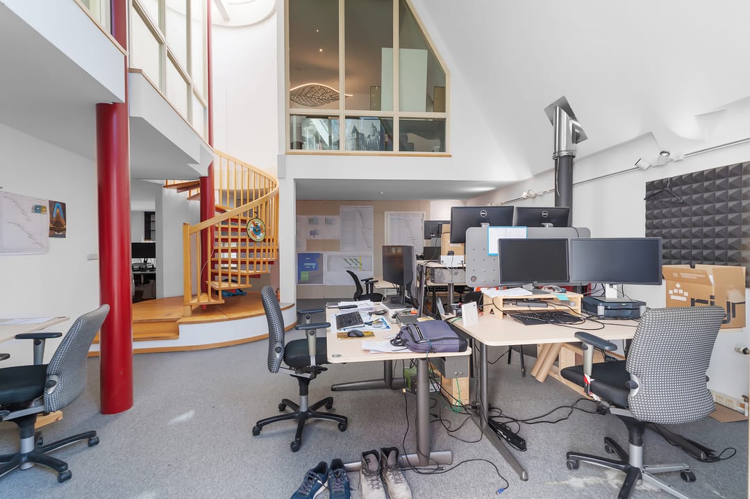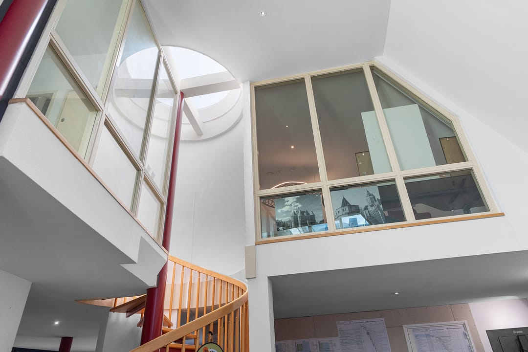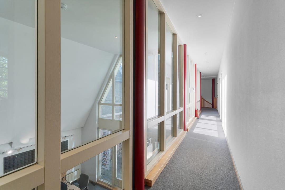 Rondom het gehele object zijn ramen waardoor er veel licht binnen komt.