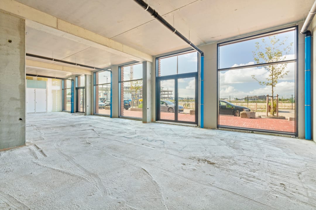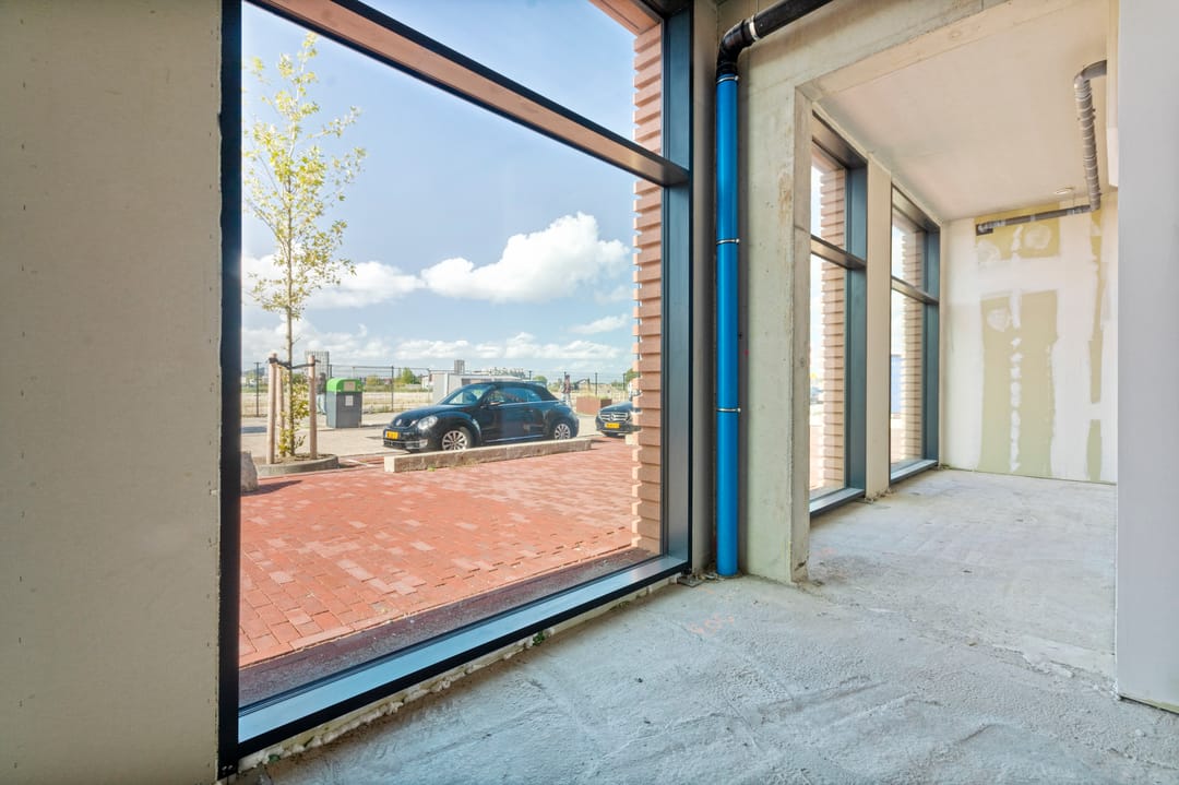 Het object is goed zichtbaar door de brede pui van ca 25 m² en heeft uitstekende lichtinval door de grote hoogtes.