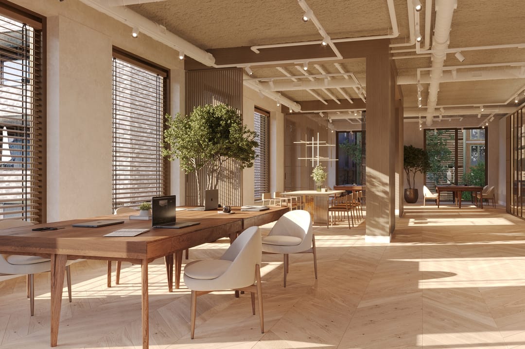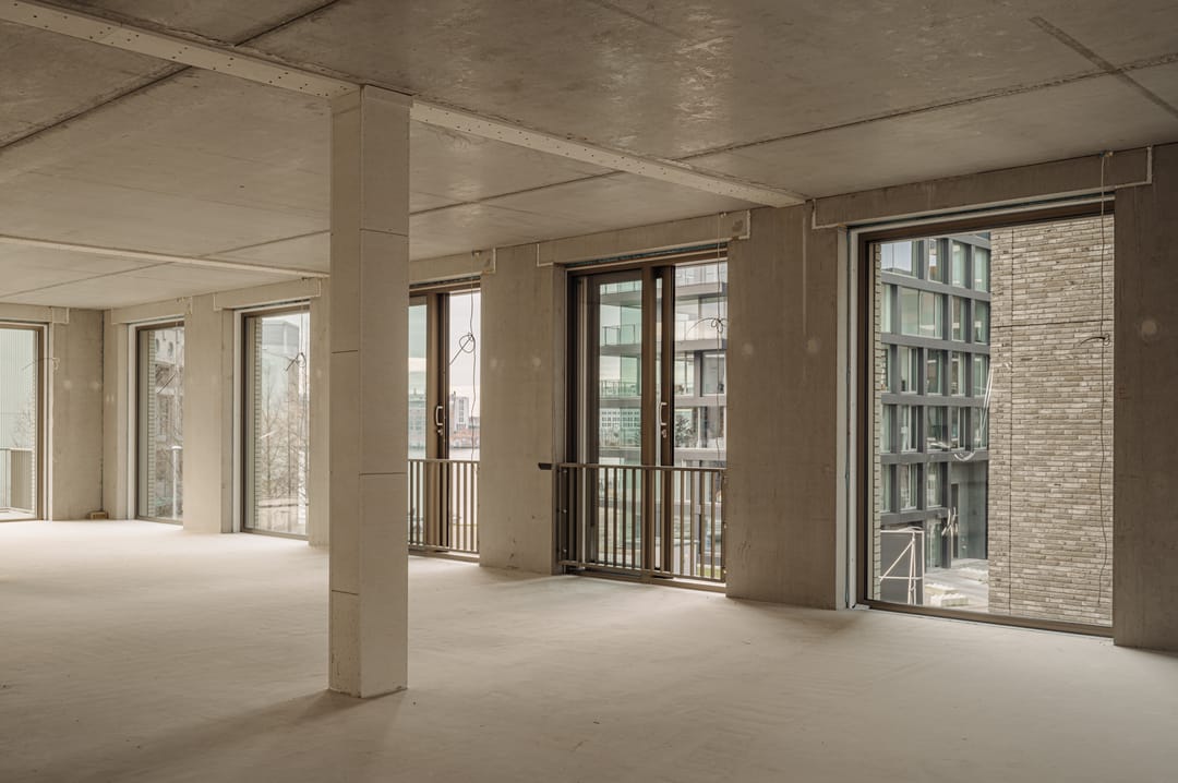 De algemene ruimten zijn voorzien van een volledige hoogwaardige vloer- en wandafwerking. De kantoorverdiepingen worden opgeleverd in casco staat. Kleuren, materialen en afwerkingen zijn conform de kleur- en materiaalstaat van Prosman de Wit Architecten.