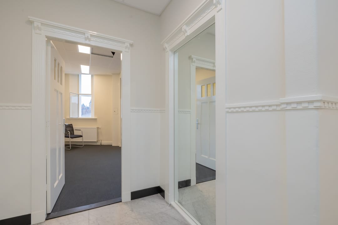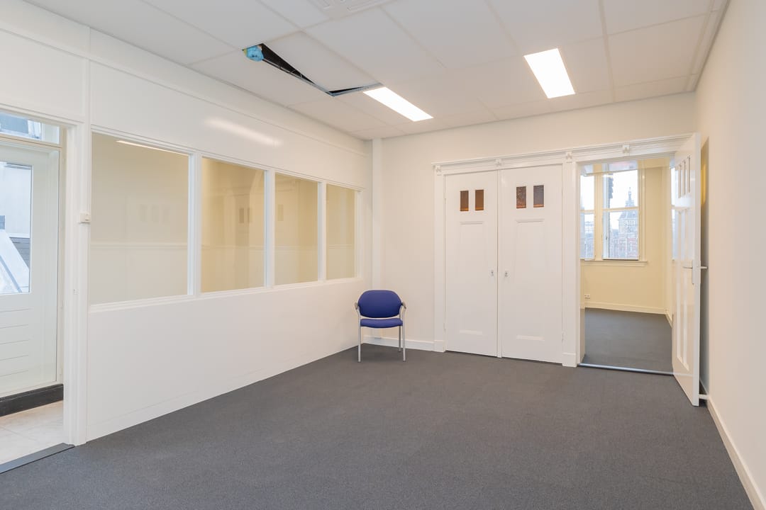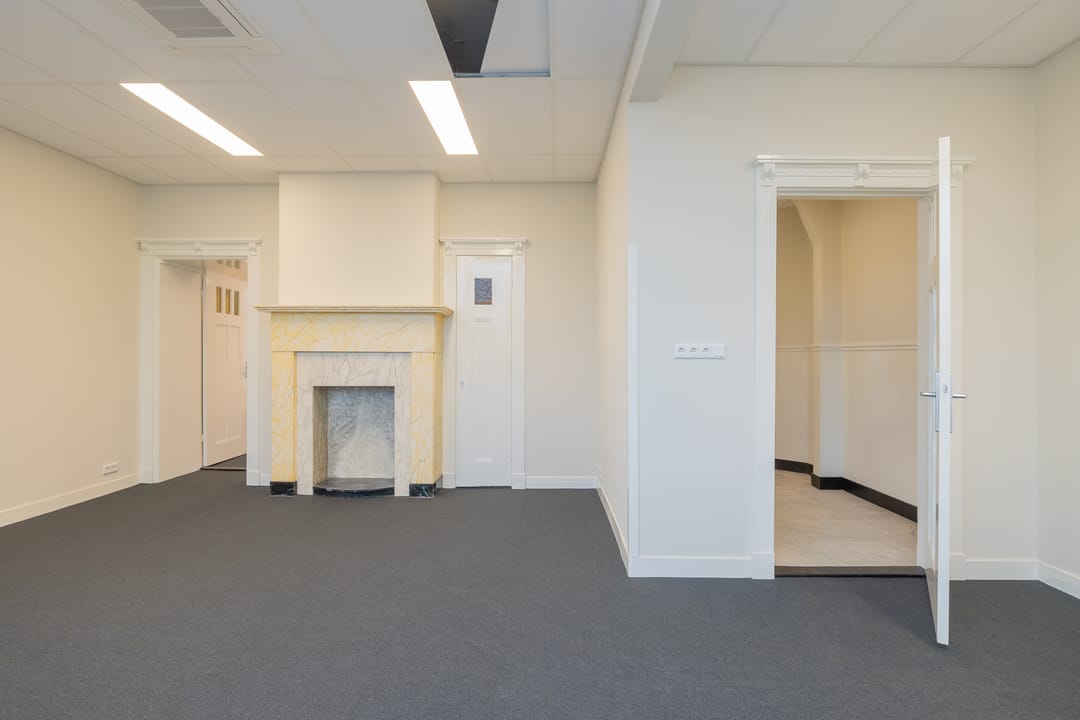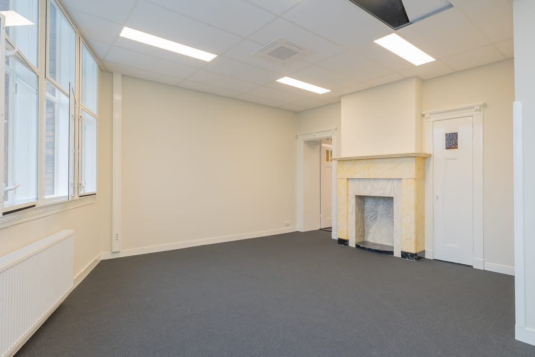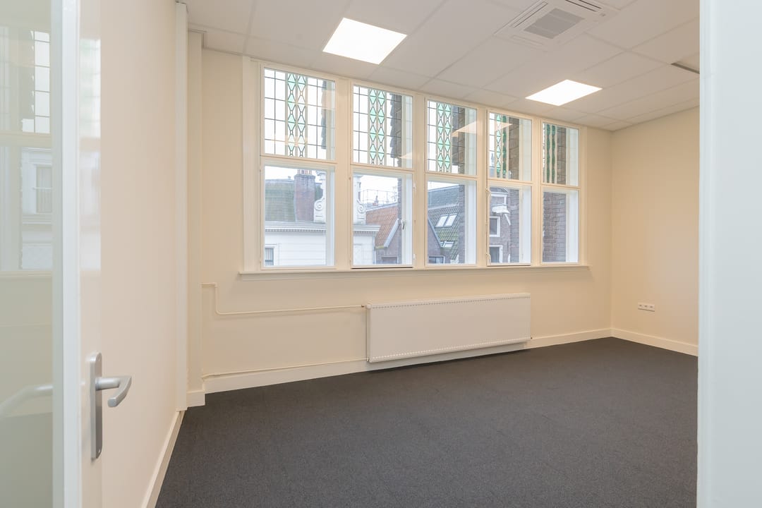 Twee kantoorkamers zijn aan de voorzijde van het gebouw gelegen. De voorste kamer over de breedte van het gebouw met een kenmerkende kleine erker. De andere kamer is aan het lichthof gelegen. Hetzelfde geldt voor de achterzijde waar er een kamer over de breedte tegen de achtergevel aan gesitueerd is en een tweede aan het lichthof. Alle kantoorkamers hebben derhalve directe en gedeeltelijk ook indirecte daglichttoetreding en zijn voorzien van kabelgoten, databekabeling, nieuw tapijt, plafonds, schilderwerk, verlichting en per kantoorkamer een zelf regelbare airco. Er is collectieve centrale verwarming en natuurlijke ventilatie met dubbele ramen. Het geheel is in 2025-2026 hoogwaardige gerenoveerd en heeft een fraaie, sfeervolle en zeer gedetailleerde historische uitstraling.