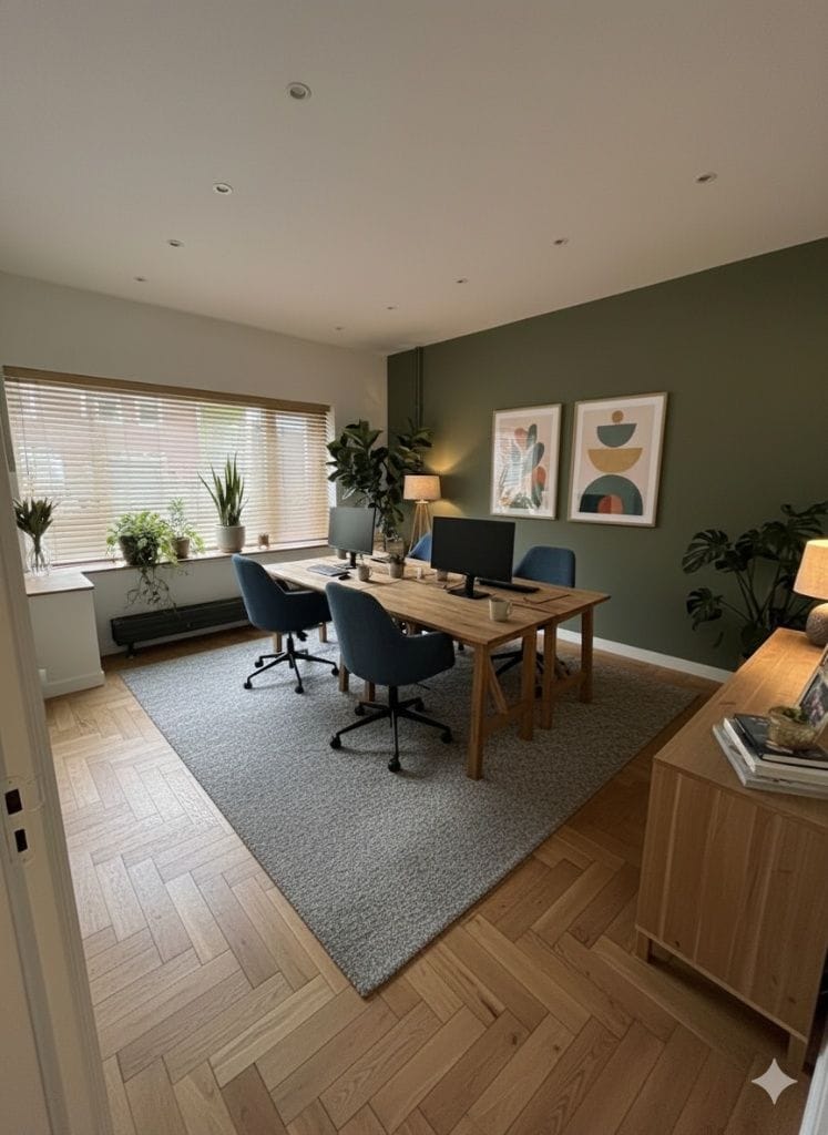 - Front room: a bright workspace with characteristic window features and views towards the street.